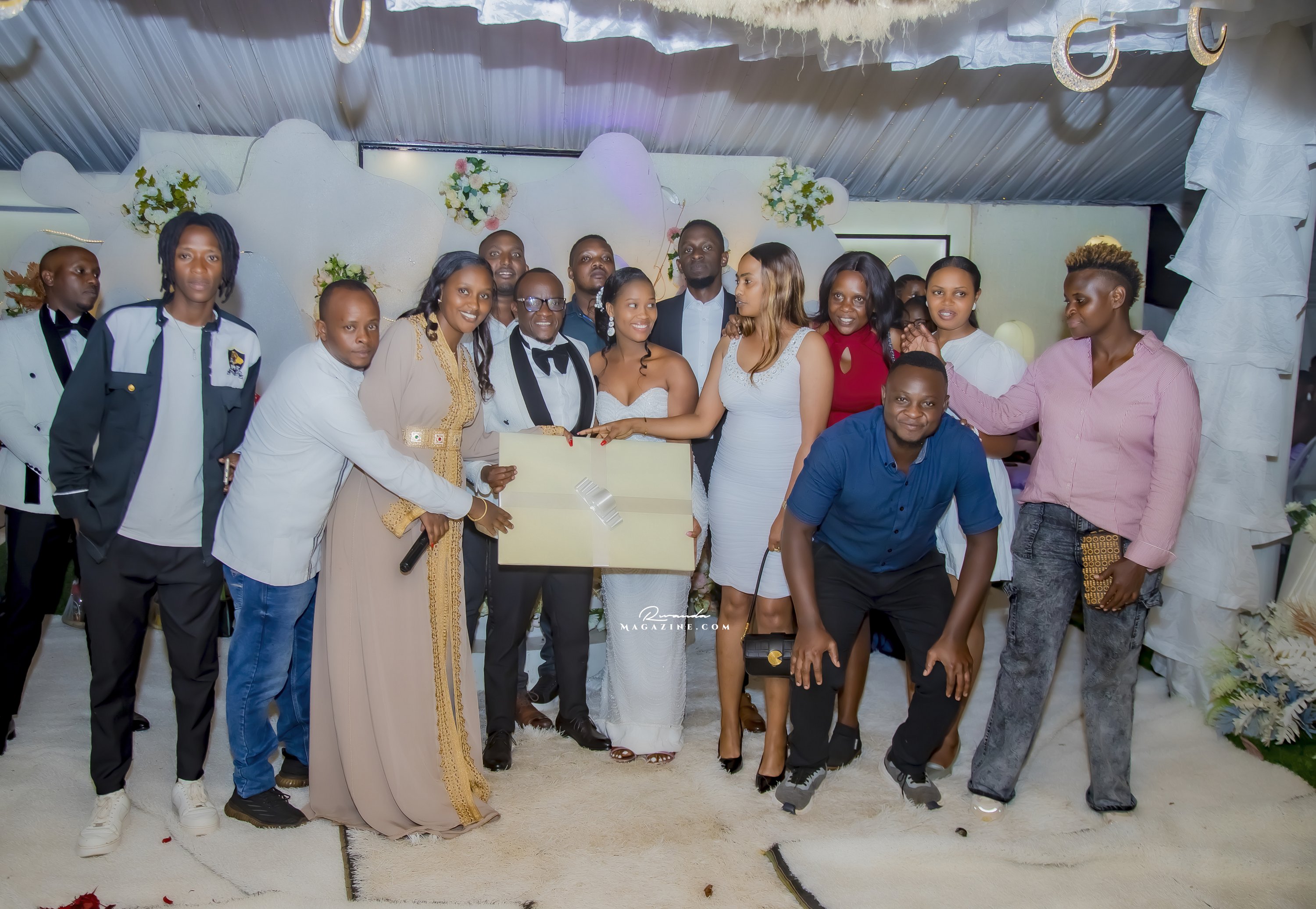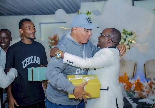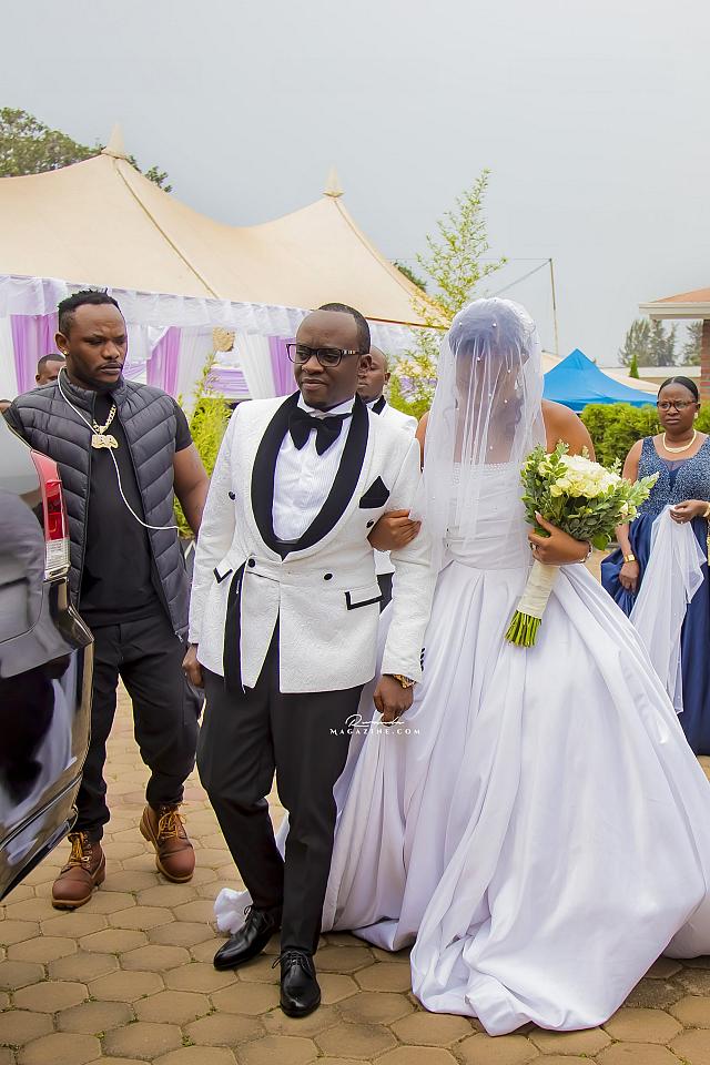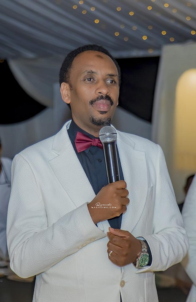 Ubwo ubukwe bwari bugiye kurangira, Rujugiro yafashe umwanya ashimira abantu 2: Mushiki we ndetse na Gen (Rtd) James Kabarebe. Bombi yabageneye impano.