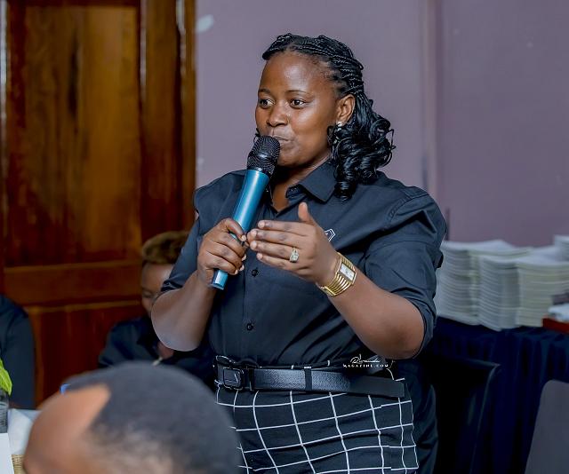 Mbabazi Olga, umunyamabanga wa Zone 1 atanga ibitekerezo kuri gahunda bari bamaze kugezweho