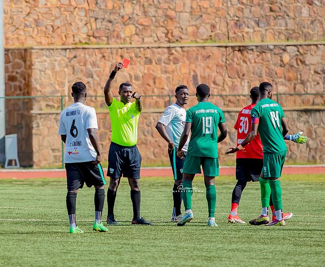 Ku isegonda rya 11 , umunyezamu wa Nkombo FC, Tuyishime Iddy bahimba Kidiaba yari ahawe ikarita itukura