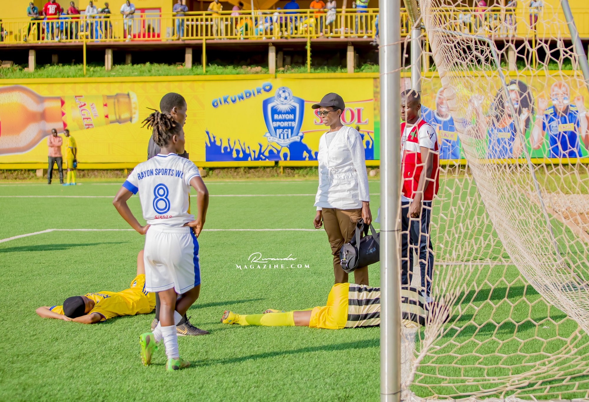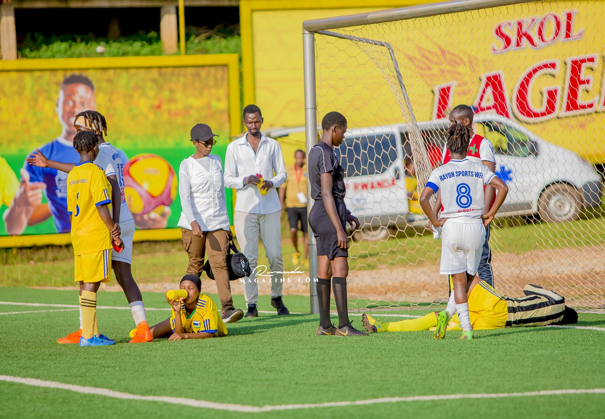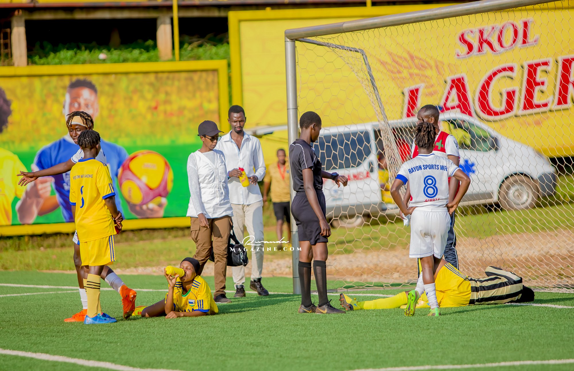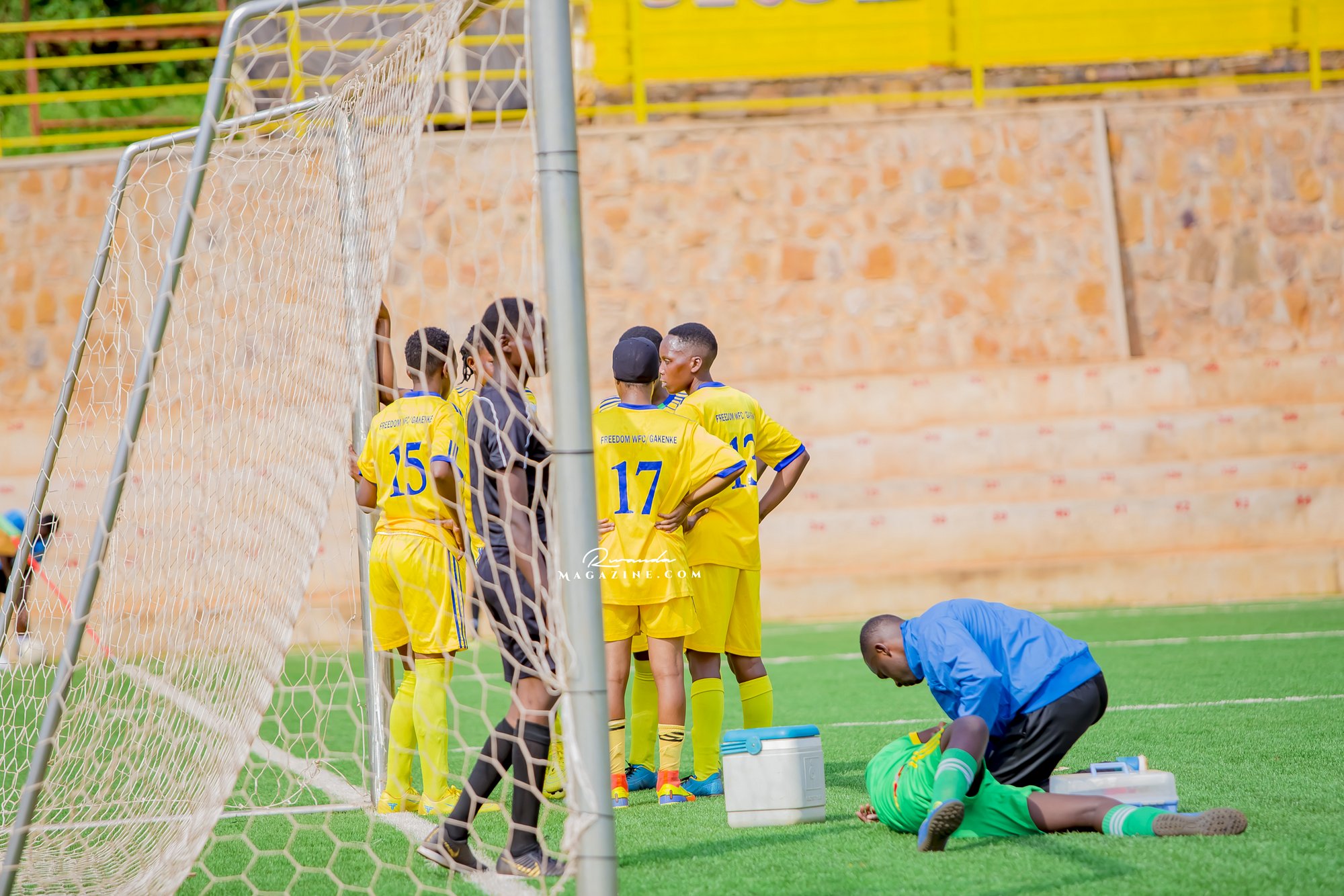 Ubwo Rayon Sports WFC yari imaze gutsinda igitego cya 8, abakinnyi ba Freedom FC bagiye baryama mu kibuga mu bihe bitandukanye, bakavurwa bamwe bakagaruka mu kibuga, abandi bakaguma hanze.