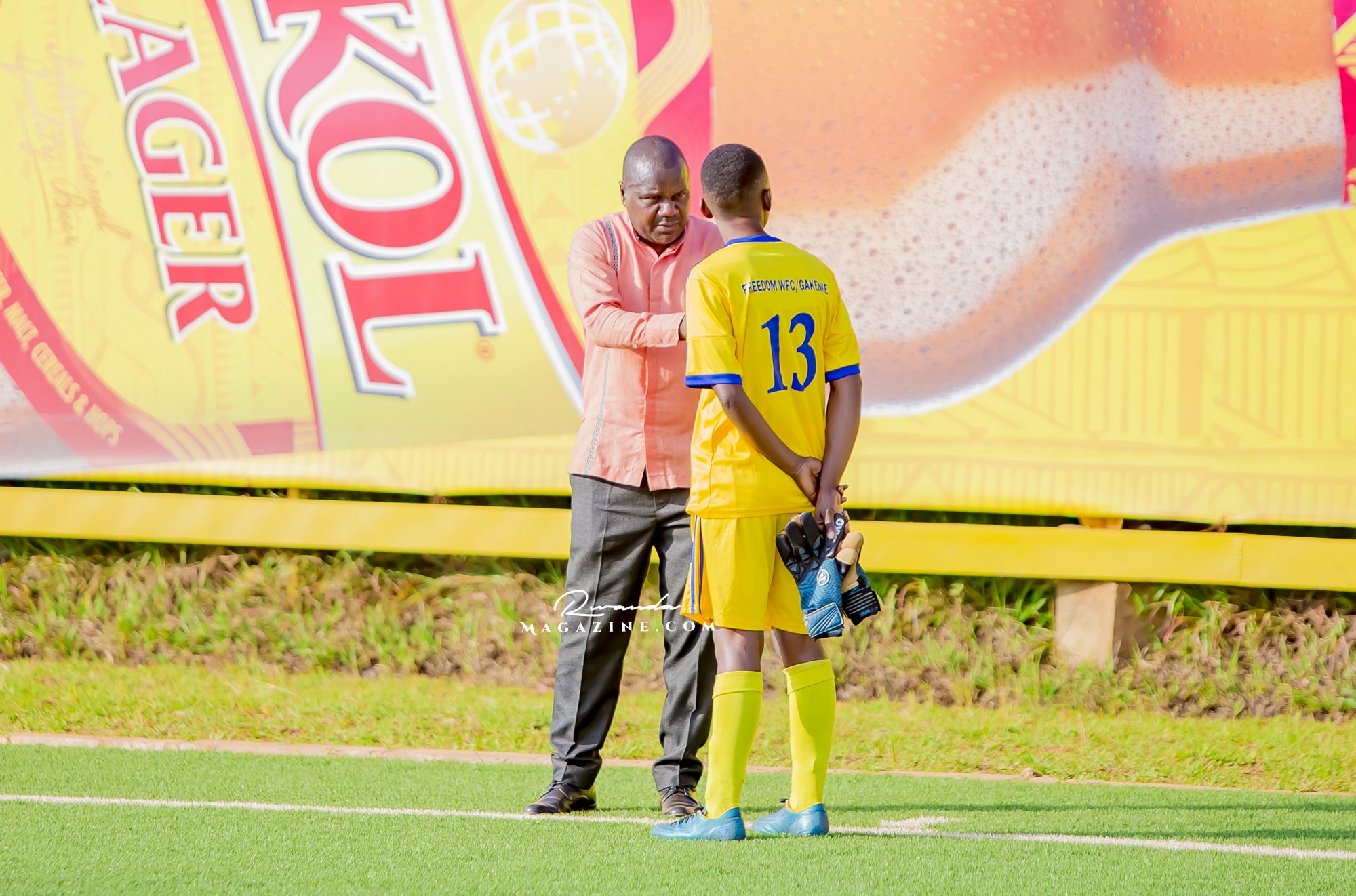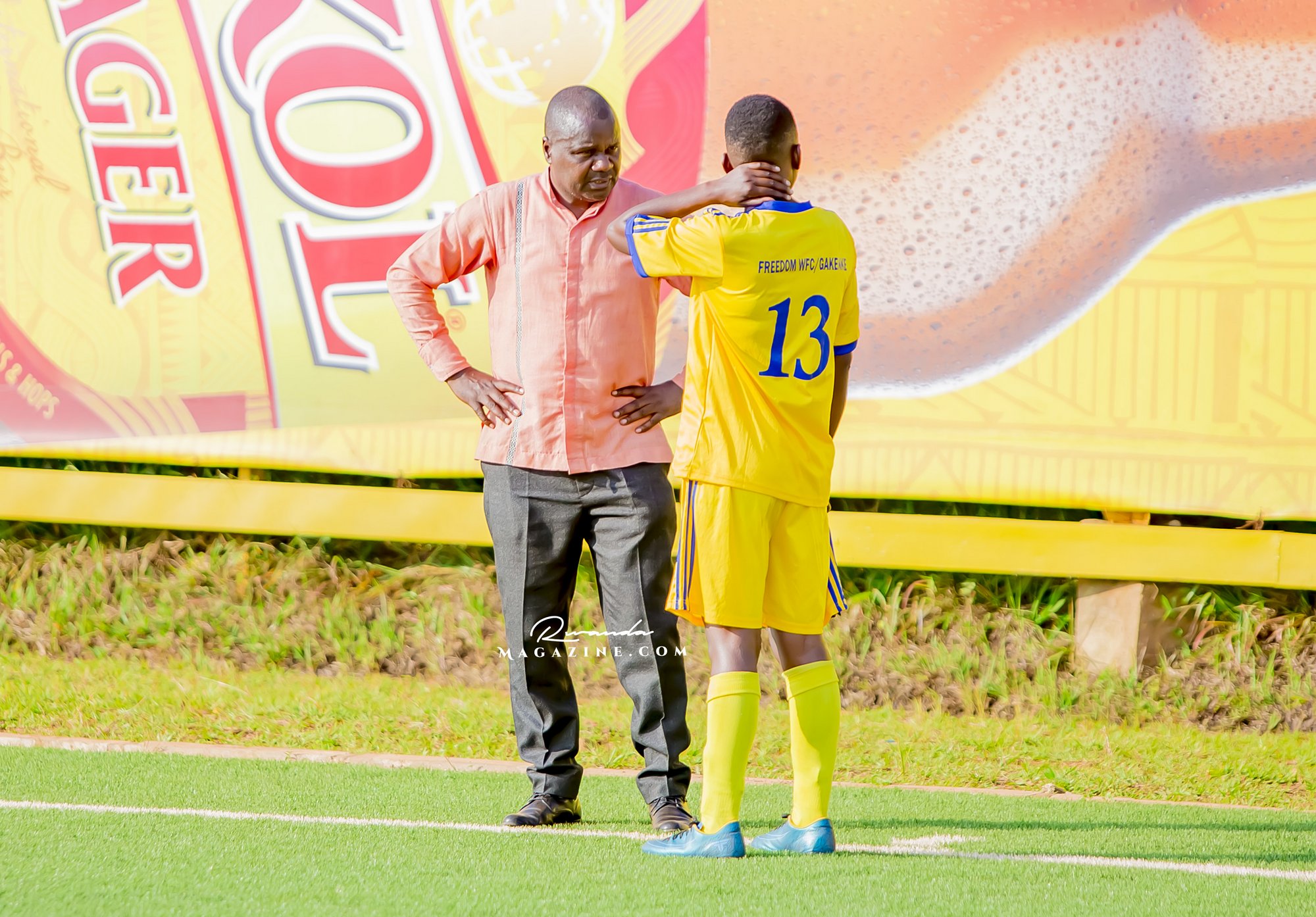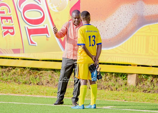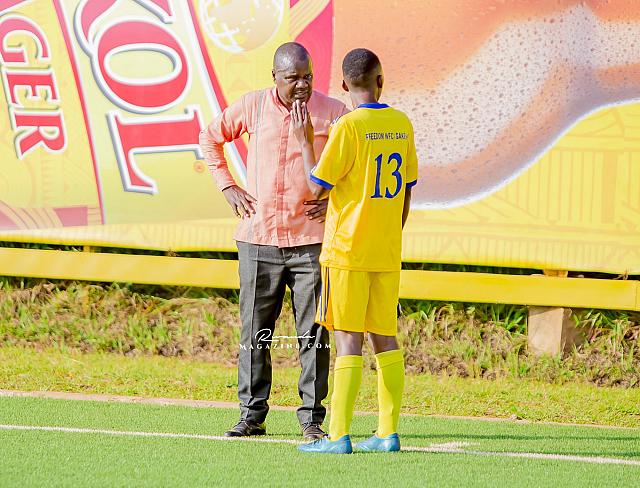 Ubwo igice cya mbere cyari kirangiye, Perezida wa Freedom FC yamanutse mu kibuga, avugana n’abakinnyi be na Staff.