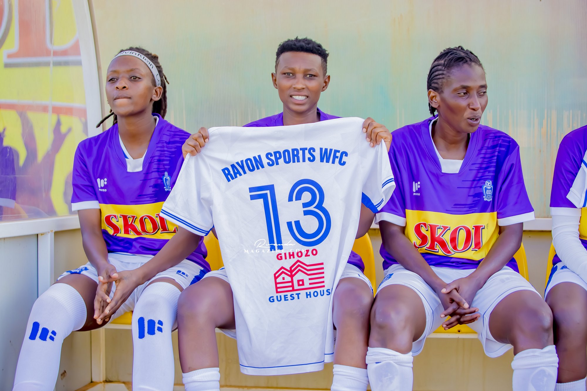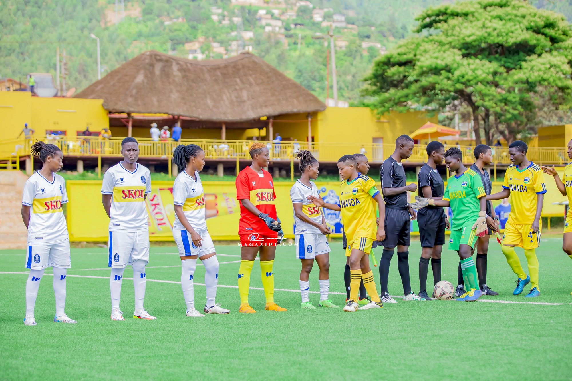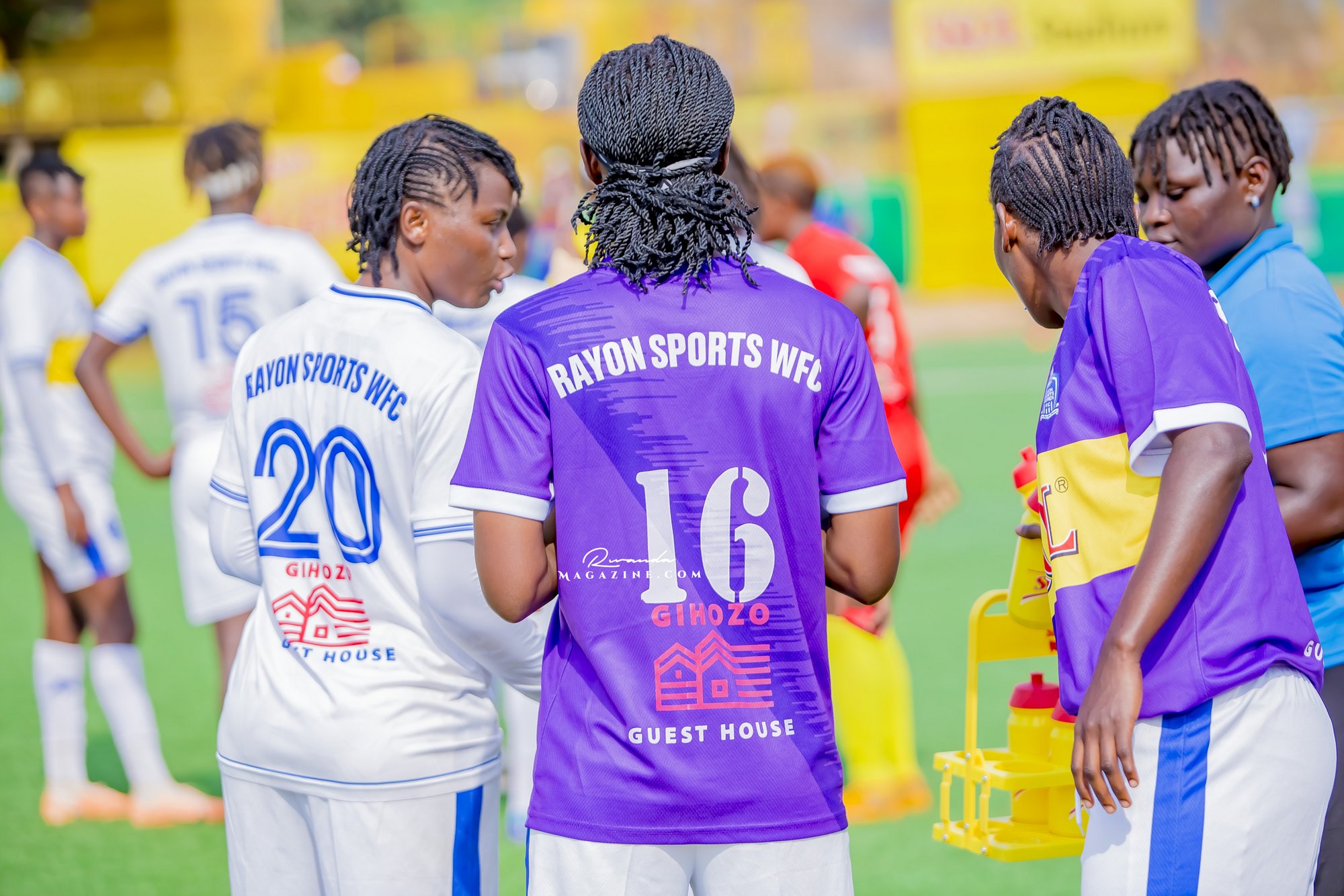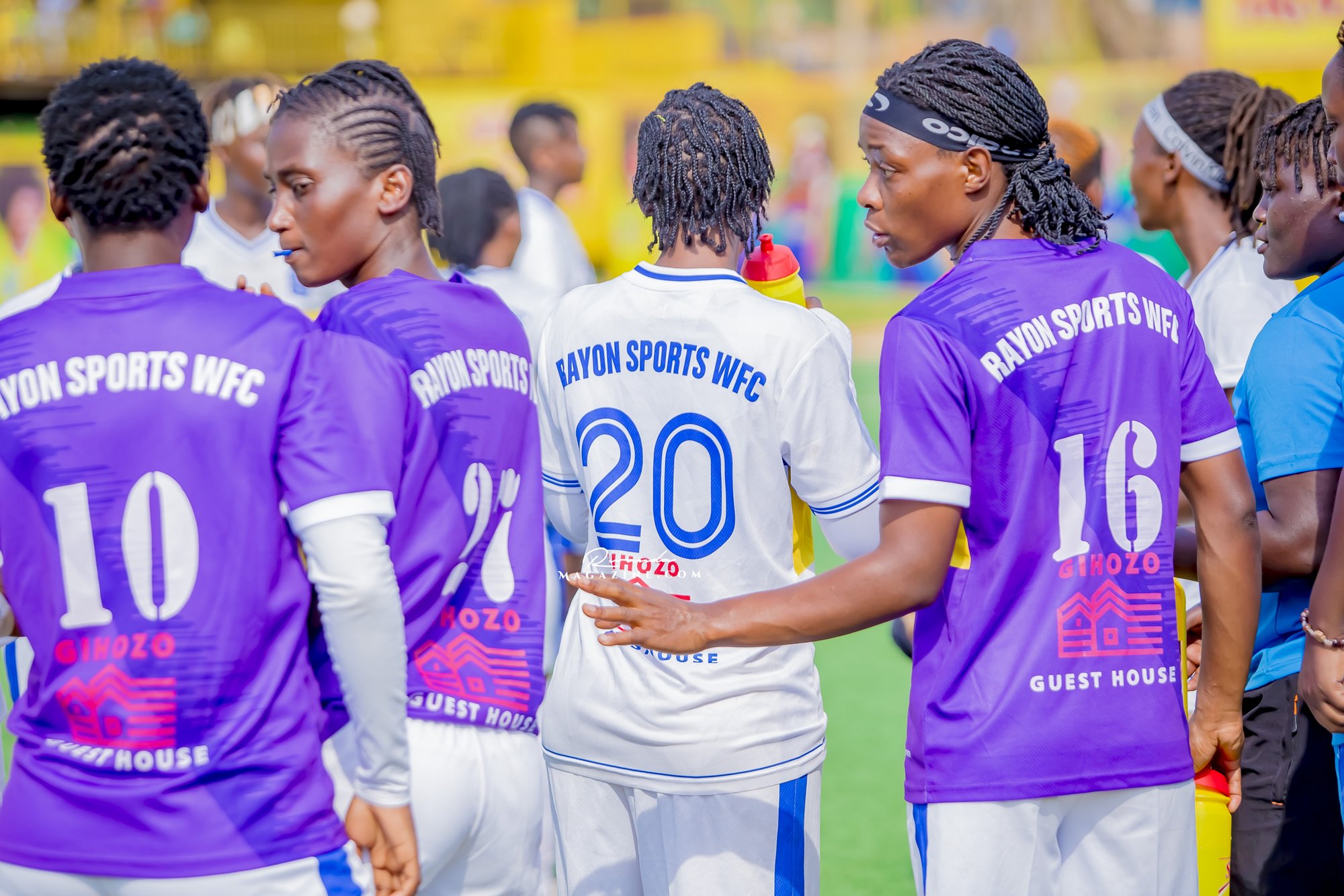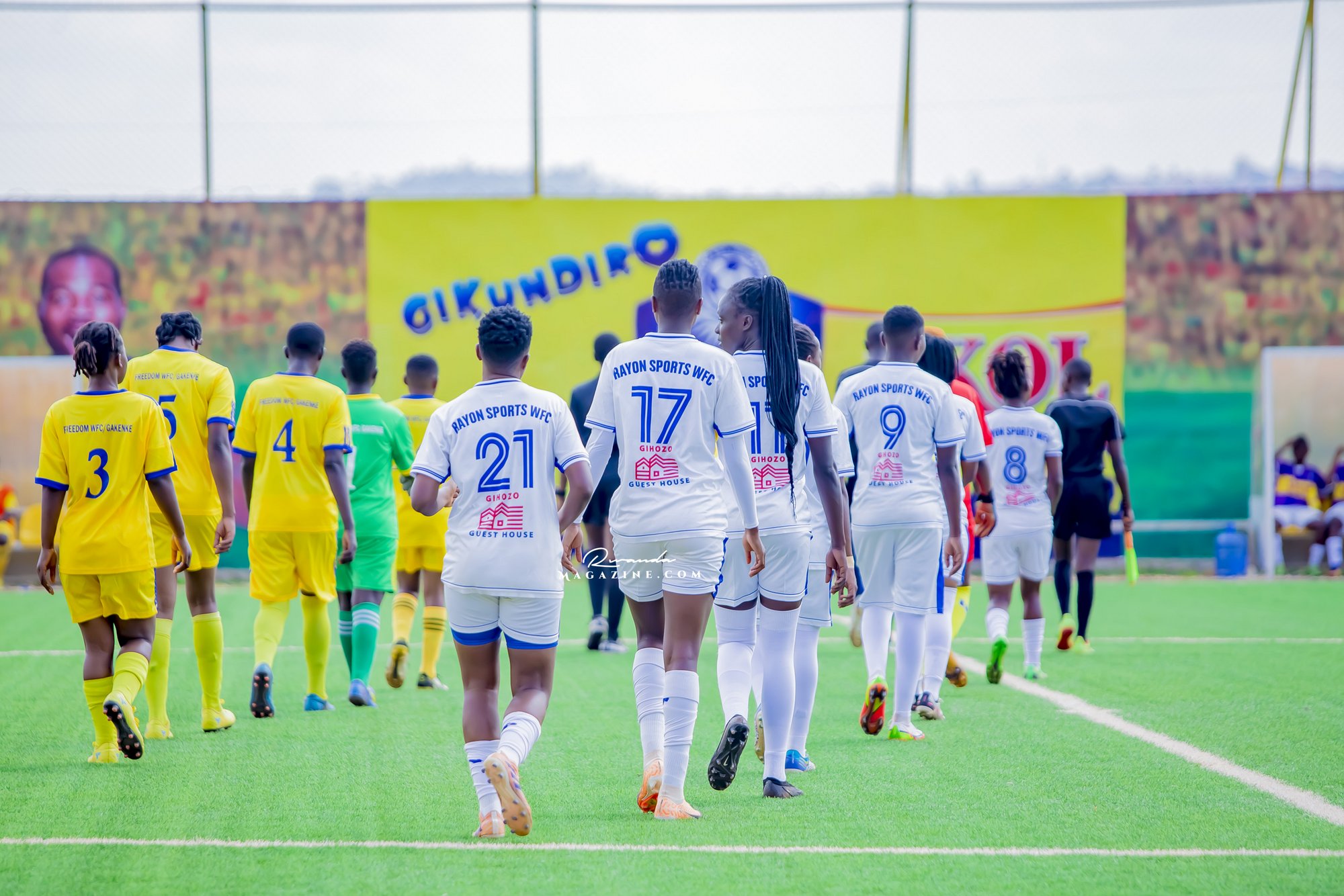Abakinnyi ba Rayon Sports WFC binjira mu kibuga...inyuma urahabona umuterankunga w’iyi kipe, Gihozo Guest House
