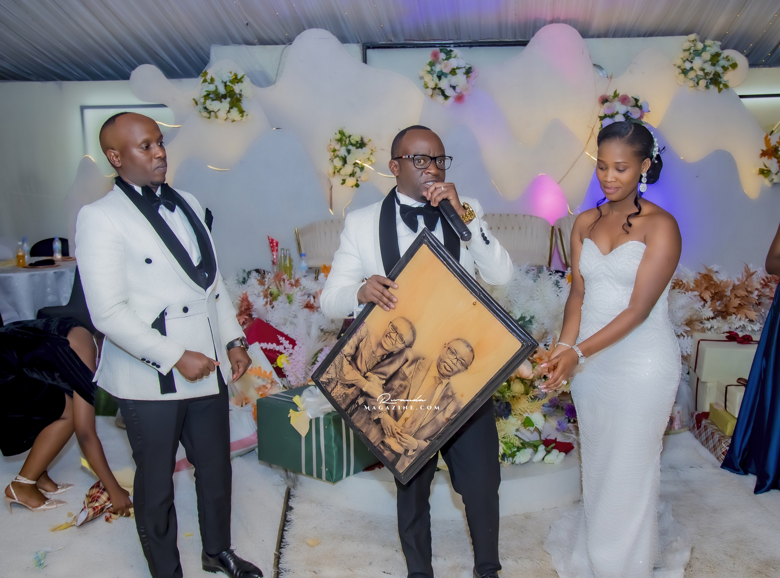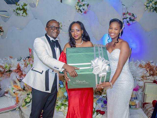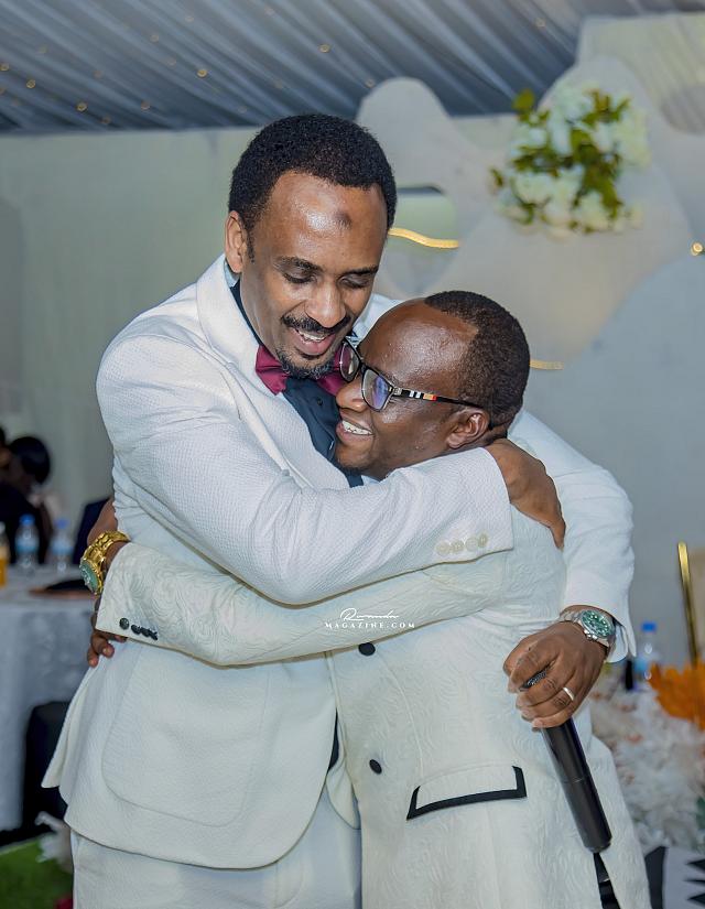 Ubwo ubukwe bwari bugiye kurangira, Rujugiro yafashe umwanya ashimira abantu 2: Mushiki we ndetse na Gen (Rtd) James Kabarebe. Bombi yabageneye impano.