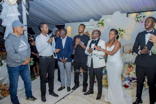 Umukozi ushinzwe ibikoresho (kit manager) w’ikipe y’igihugu Amavubi akaba n’umukunzi ukomeye w’ikipe ya APR FC, Munyaneza Jacques (Rujugiro), yasezeranye na Uwimana Dovine mu bukwe yagabiwemo inka n’abarimo Sadate Munyakazi ndetse Rujugiro na we afata umwanya ashimira cyane Gen (Rtd) James Kabarebe.