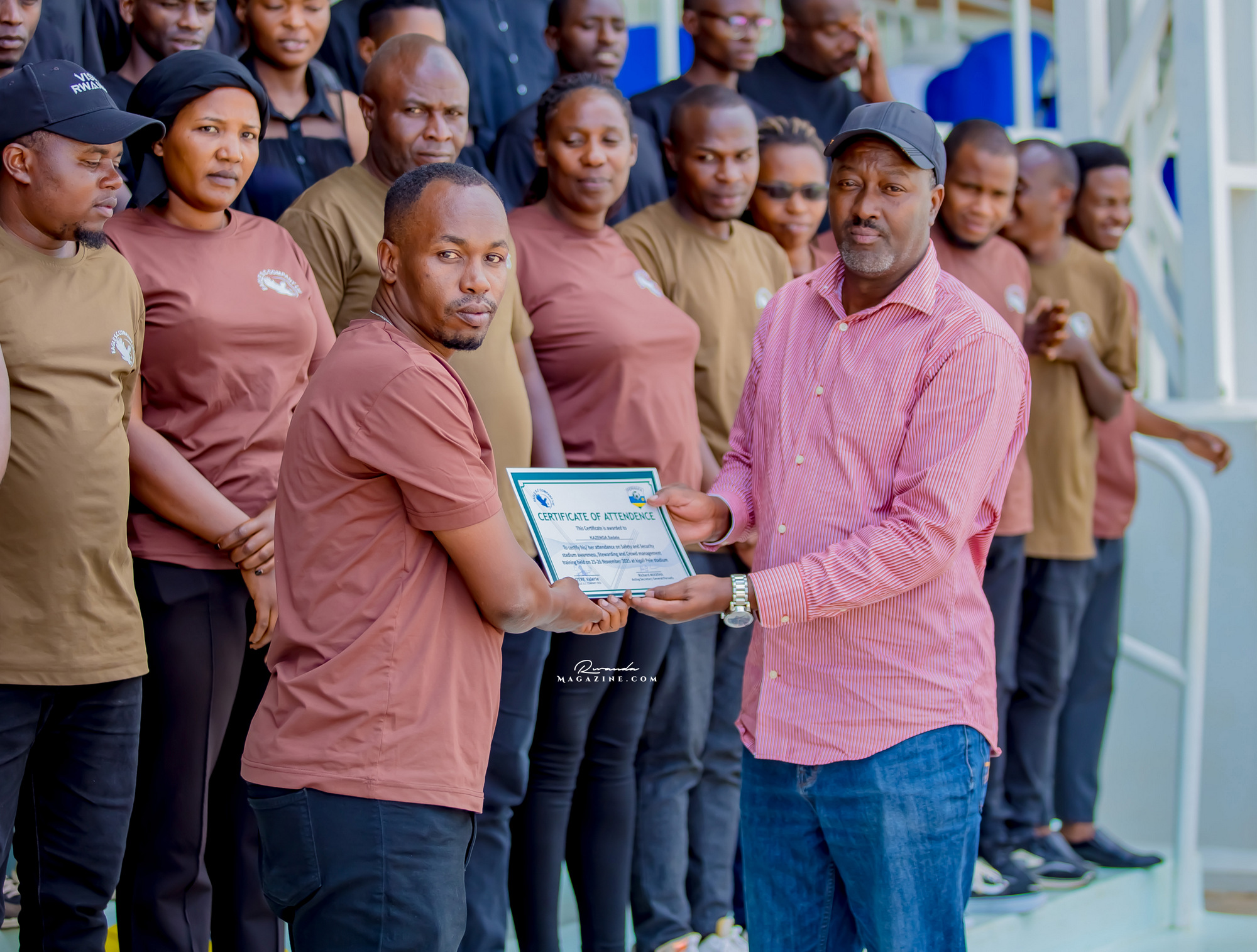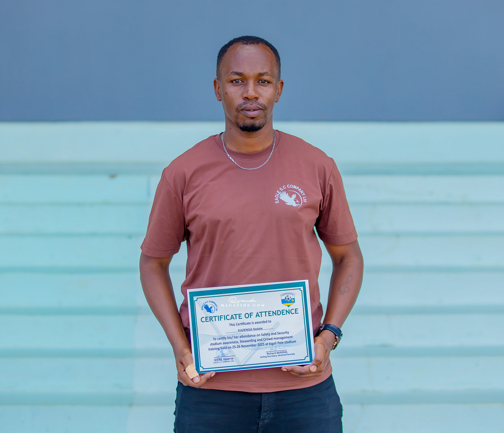 Kuri uyu wa kane tariki 27 Ugushyingo 2025 kuri Kigali Pele Stadium hasojwe amahugurwa y’Itsinda Eagle Company Ltd ry’abashinzwe umutekano wo ku bibuga (Stewards) bahawe na Komiseri muri FERWAFA ushinzwe umutekano n’imyitwarire myiza mu mikino, Bizimana Jonathan.