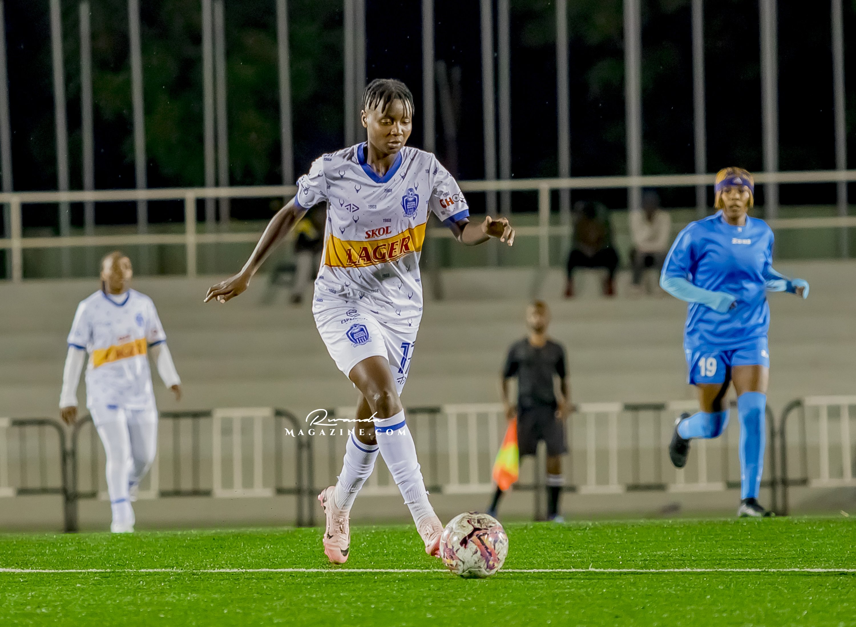 Monica Karambu ukina ari umunyezamu ariko iyo bibaye ngombwa akinishwa ataha izamu....kuri uyu mukino Rayon Sports yaburaga abakinnyi 3 ngenderwaho biba ngombwa ko Monica na we akoreshwa nka rutahizamu
