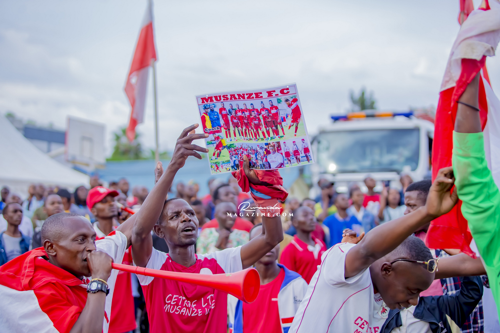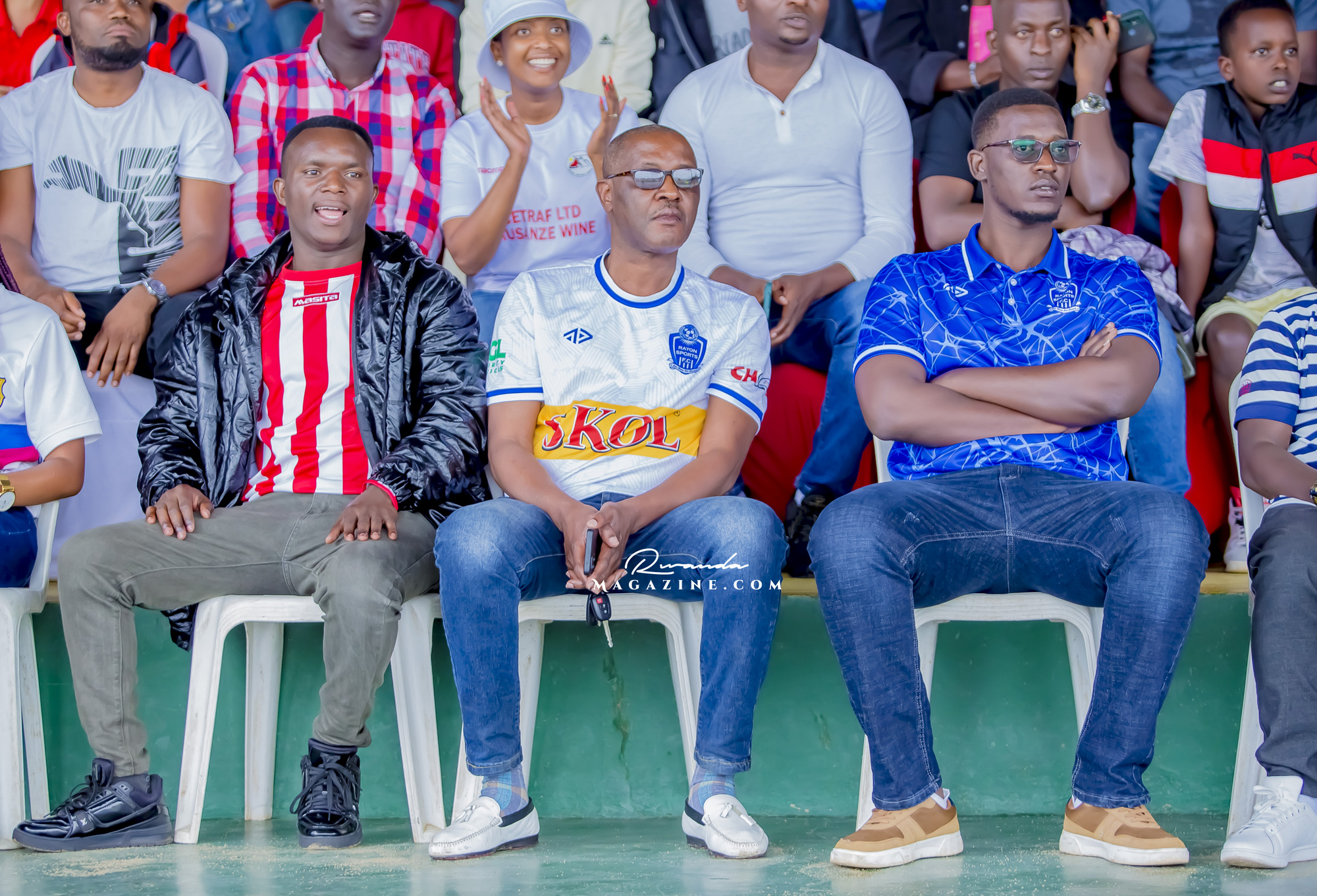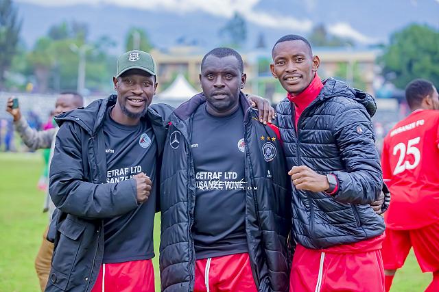 Tuyishimire Placide (hagati), Perezida wa Musanze FC yahageze kare ngo ahe ikaze abafana ba Rayon Sports...araganira na Furaha JMV umwe mu bavuga rikumvikana muri Rayon Sports