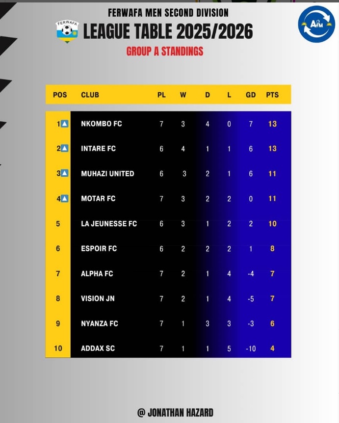 Kunganya uyu mukino byatumye Nkombo FC ifata umwanya wa mbere n’amanota 13 inganya n’Intare FC. Muhazi United yagumye ku mwanya wa 3 n’amanota 11.