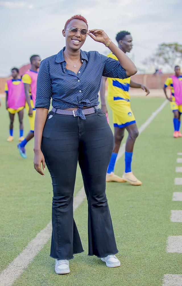 Uwera Lydia, umunyamabanga wa Nkombo Stars yishimira umusaruro bakuye mu munsi umwe nyuma yo kunganya na Police FC 3-3, bakananganya na AS Muhanga 1-1