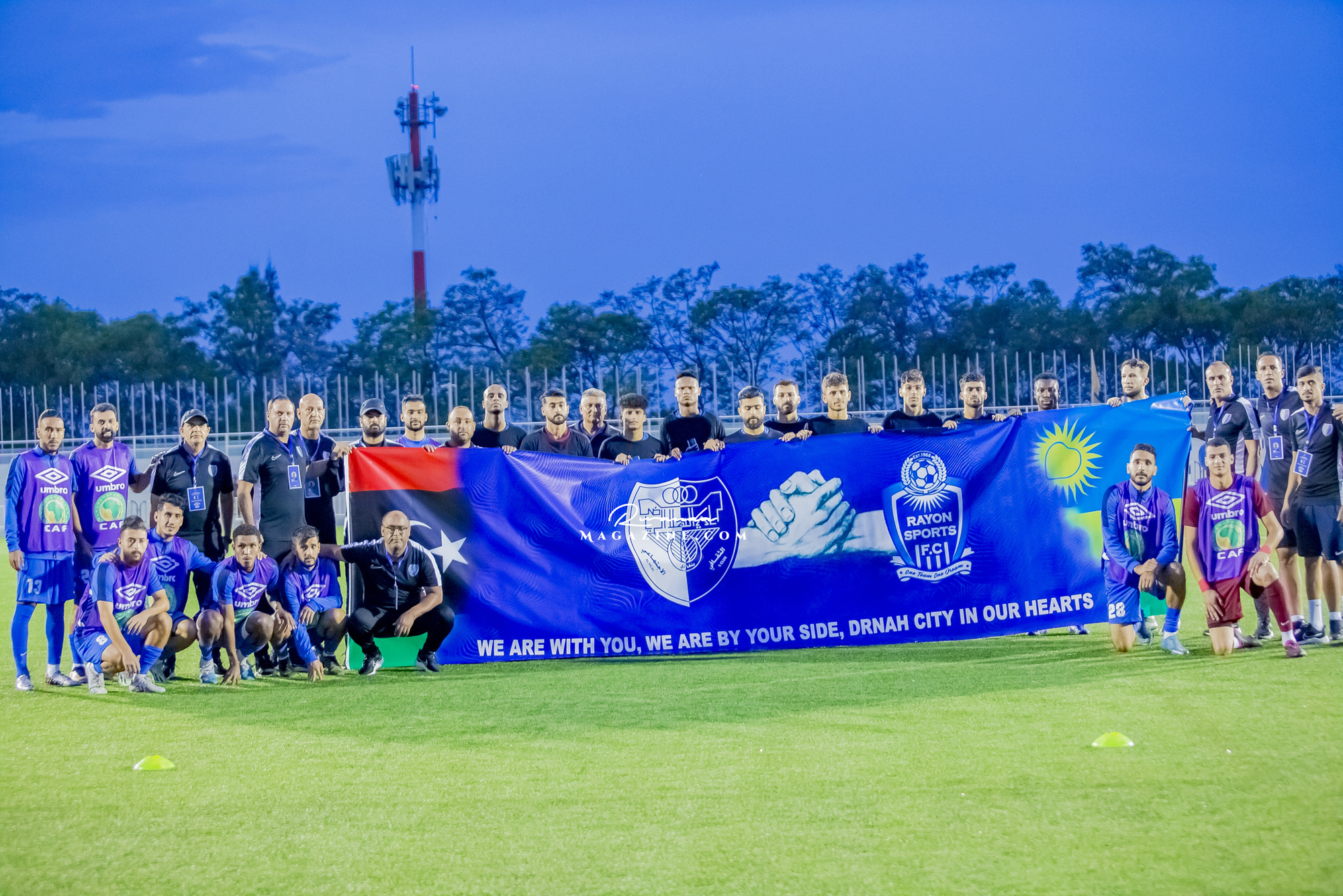 Mbere y’umukino, Al Hila Benghazi bagaragaye bafite ubutumwa bwifatanya n’ababuze ababo