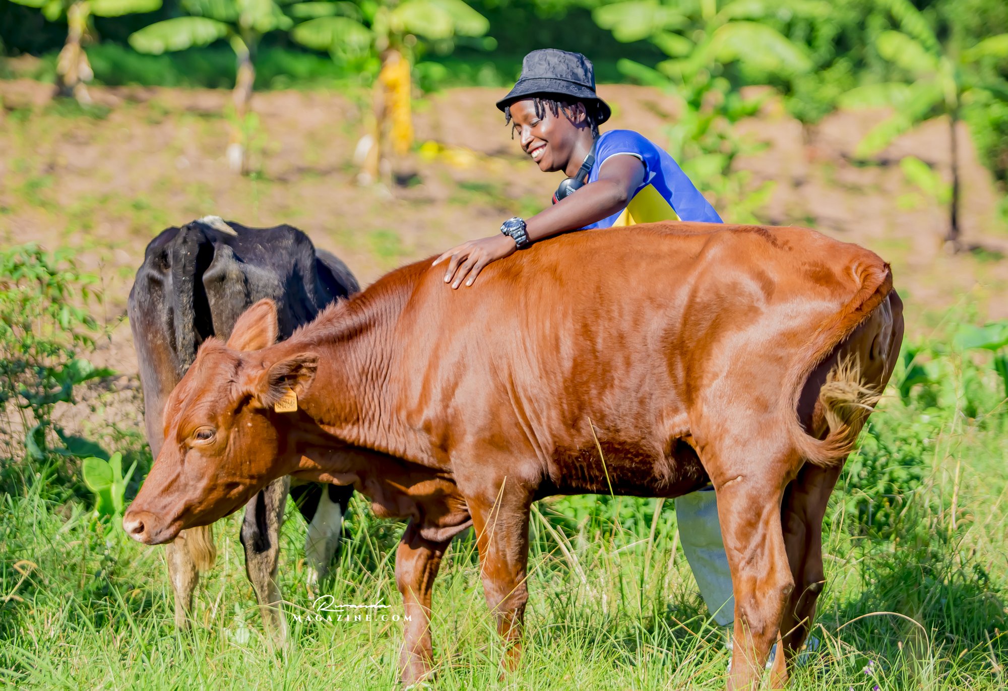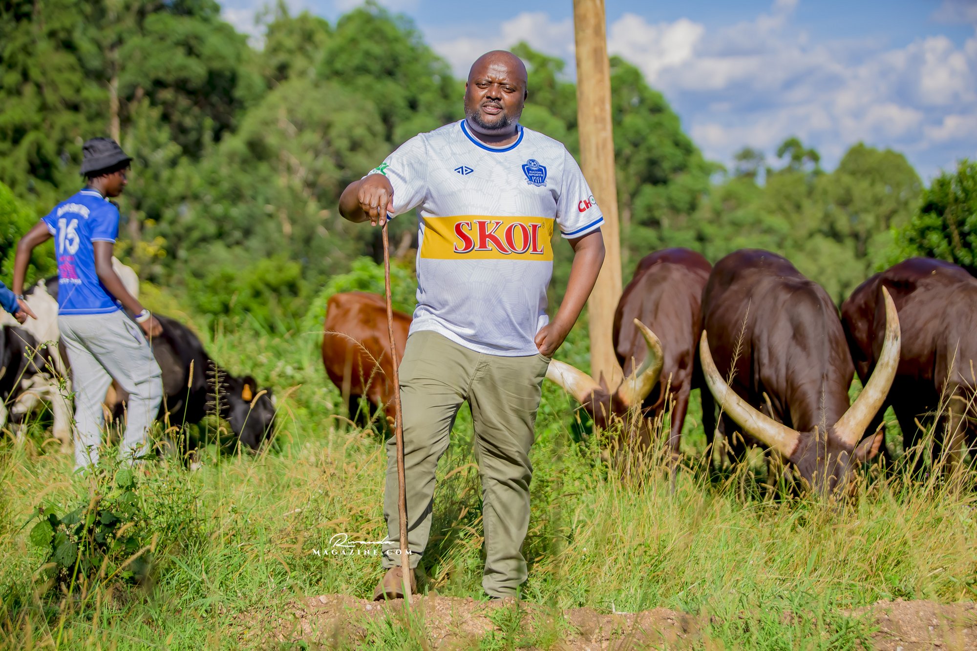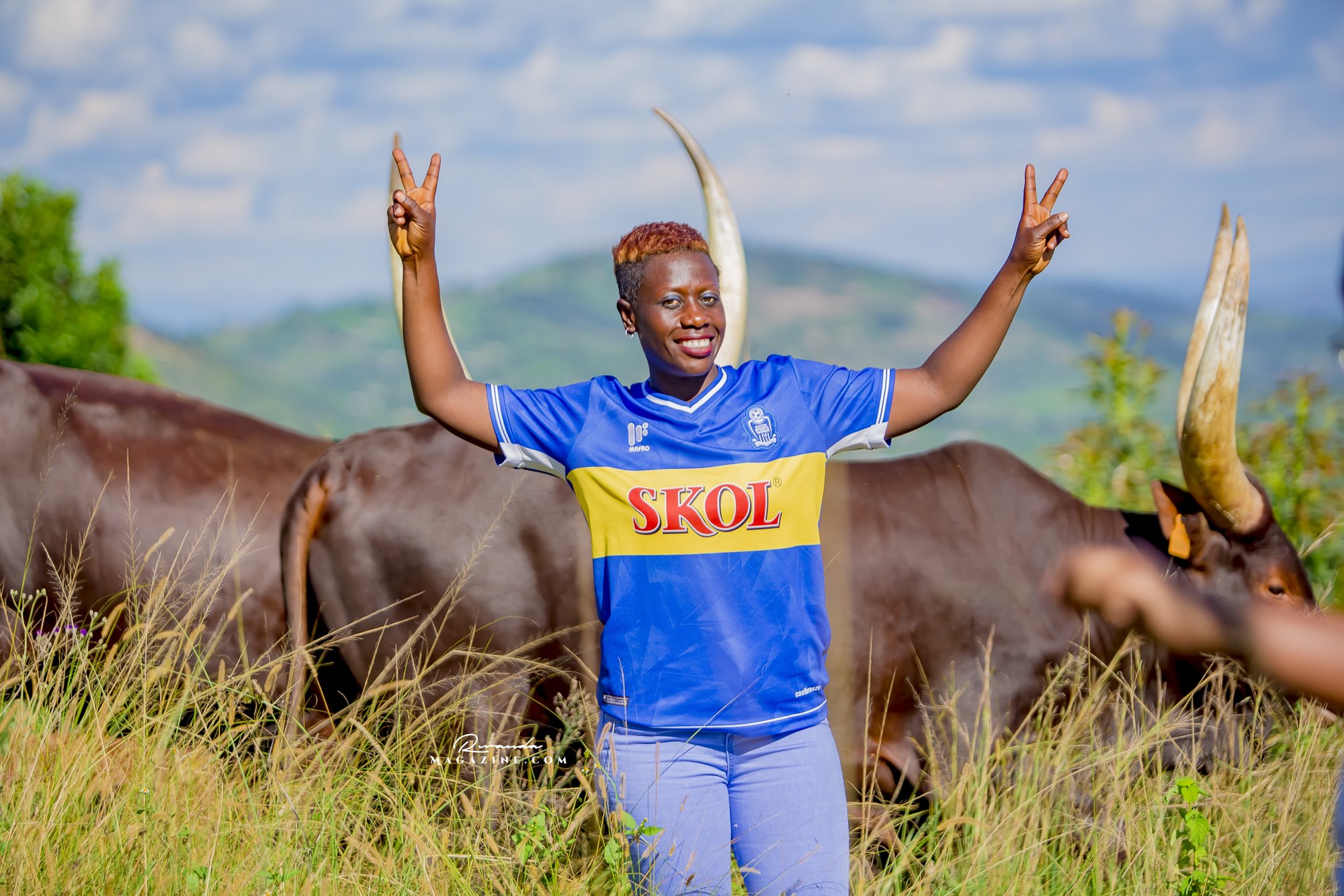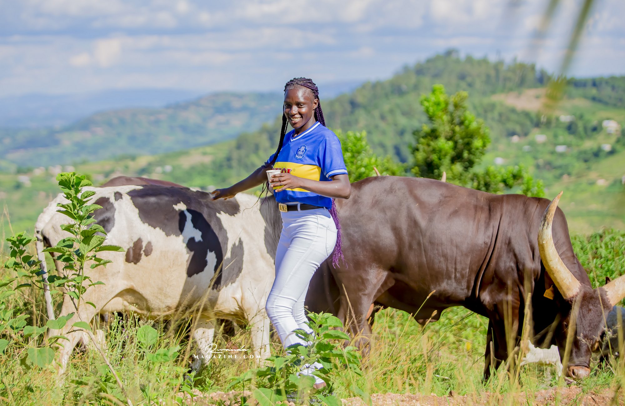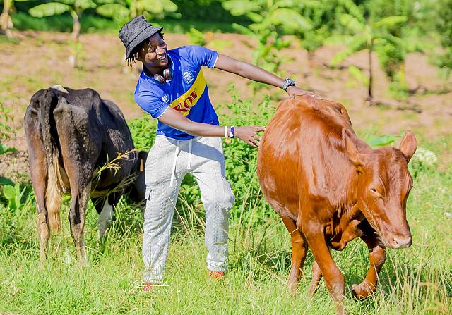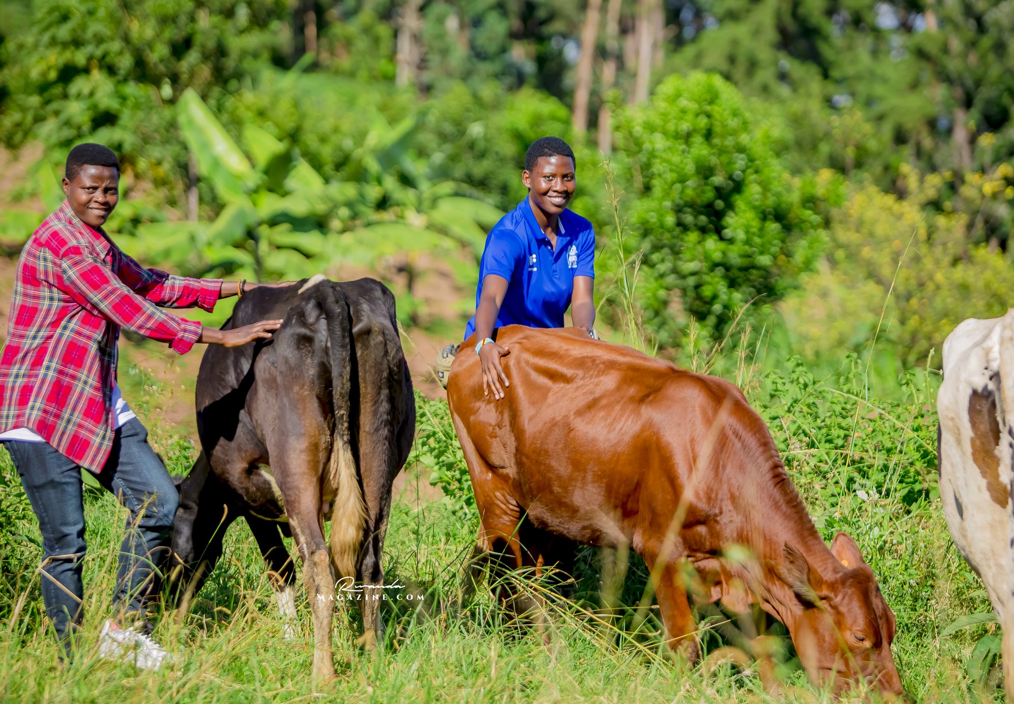 Claude Muhawenimana, umuyobozi w’abafana ba Rayon Sports na Uwimana Jeanine , Presidente w’icyubahiro wa Rayon Sports WFC bishimiye inka bagabiwe