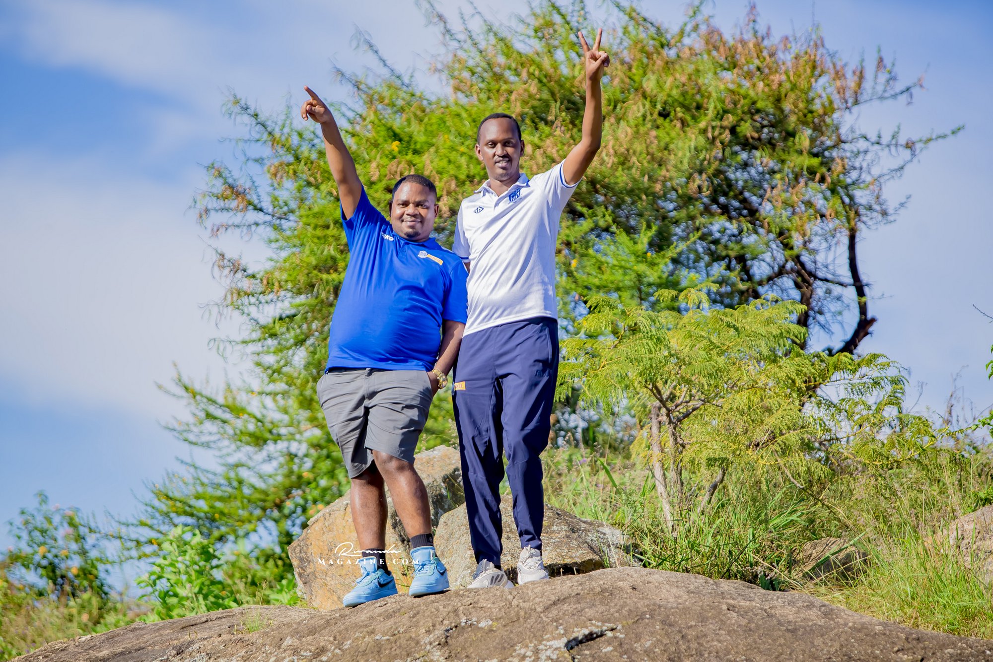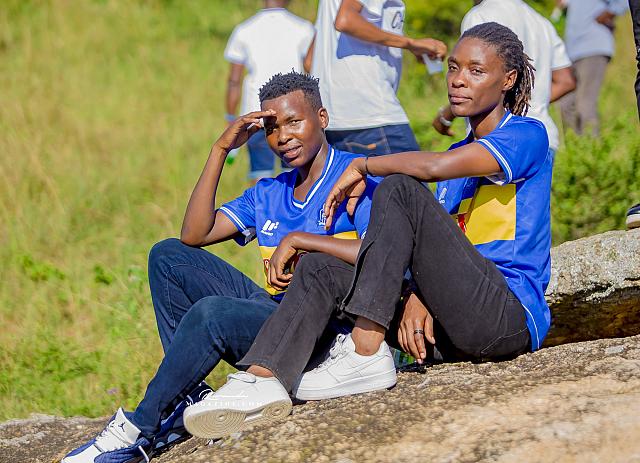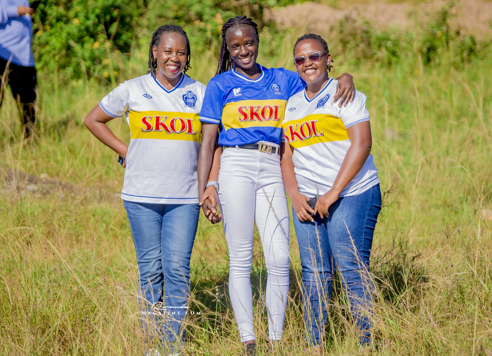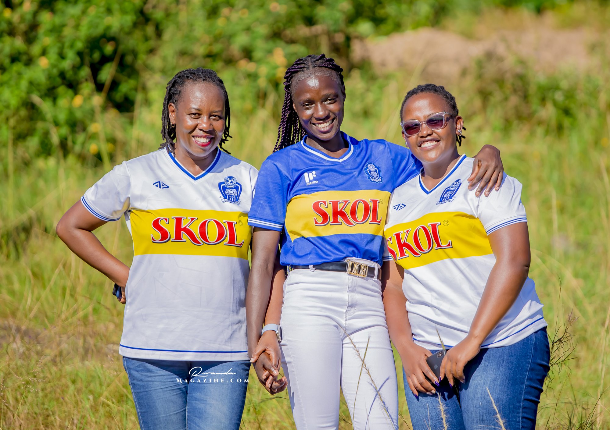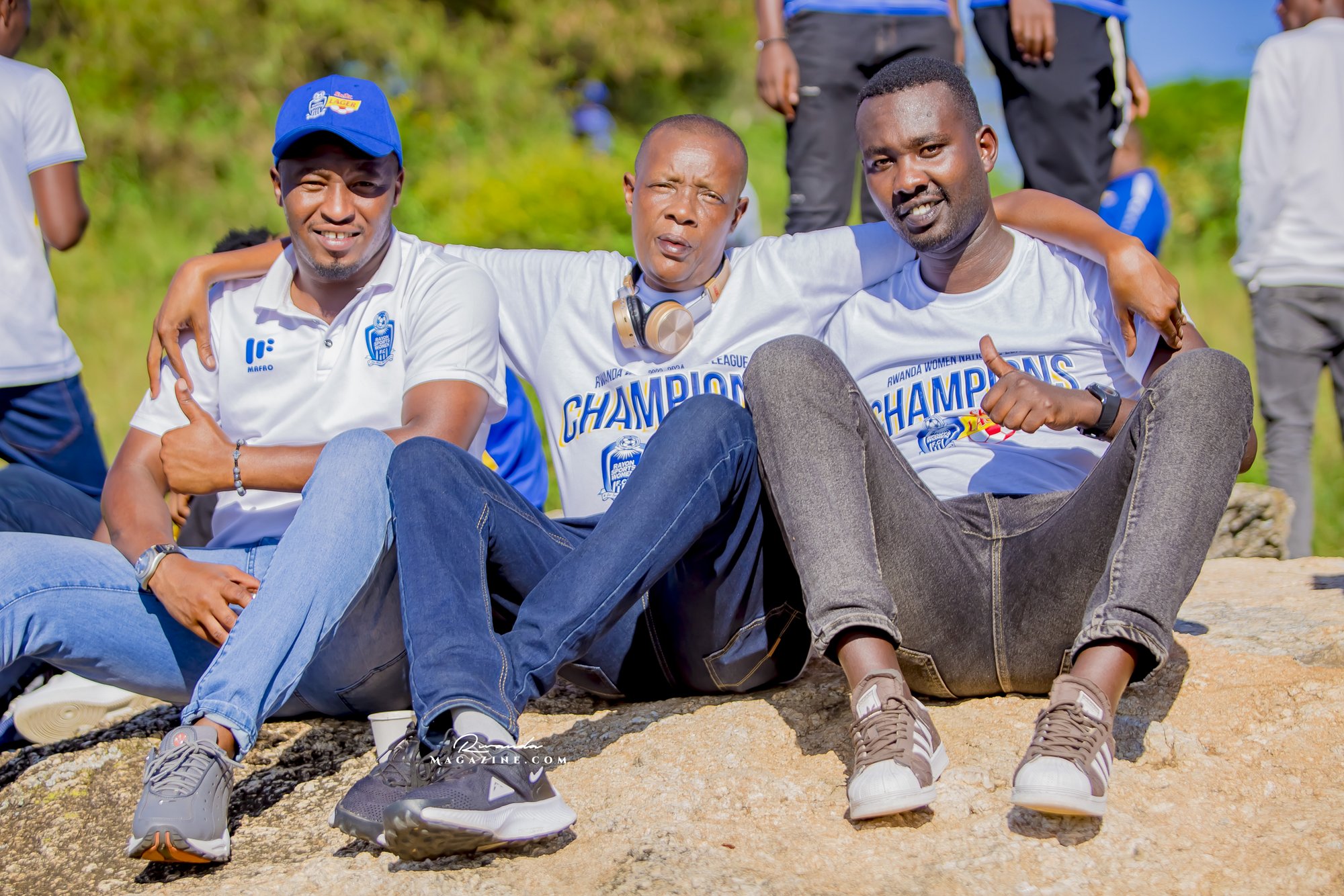 Nshimiyimana Emmanuel bahimba Matic (i buryo) na Olivier, umufana w’imena wa Rayon Sports WFC bishimiye gutemberera ku Mayaga
