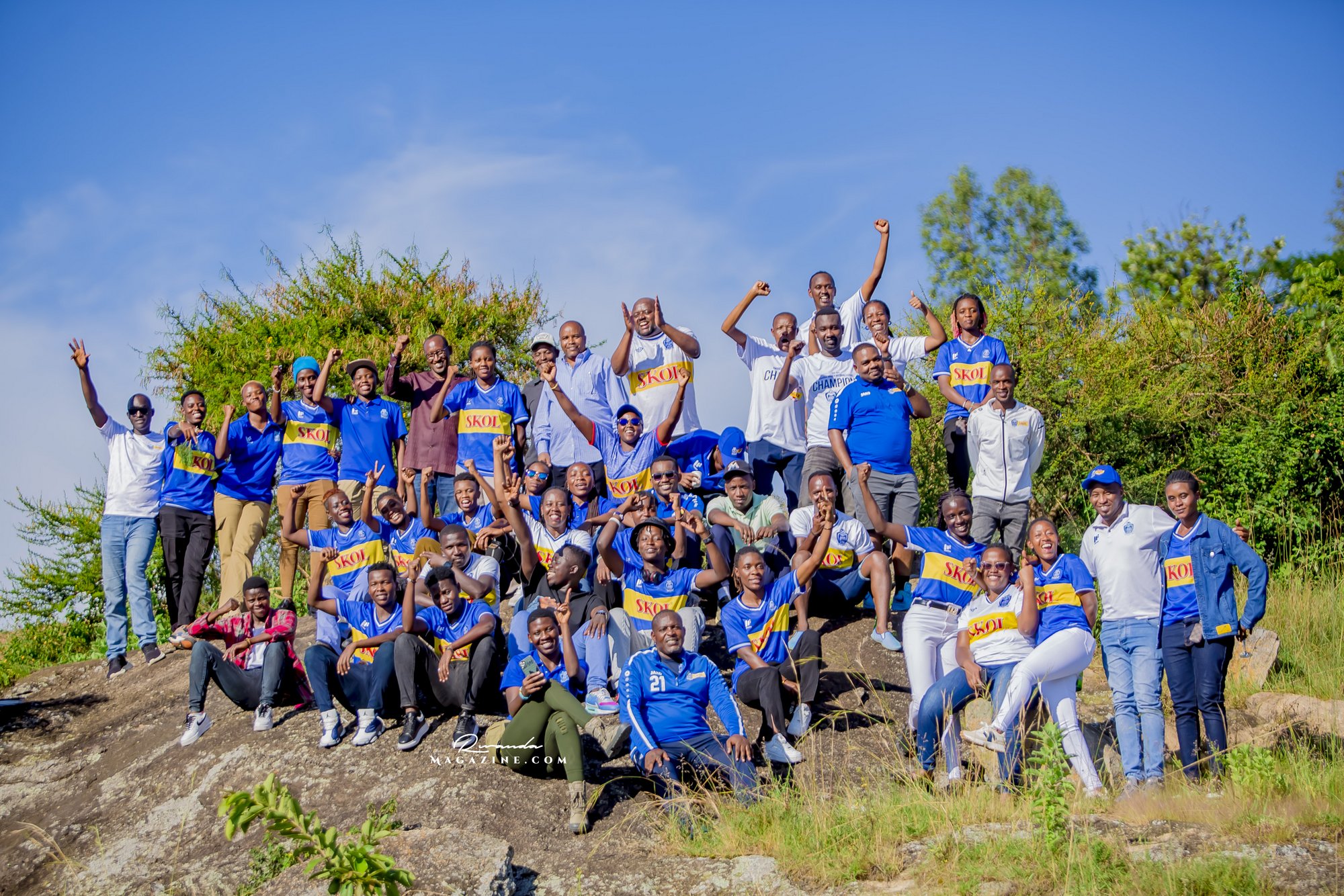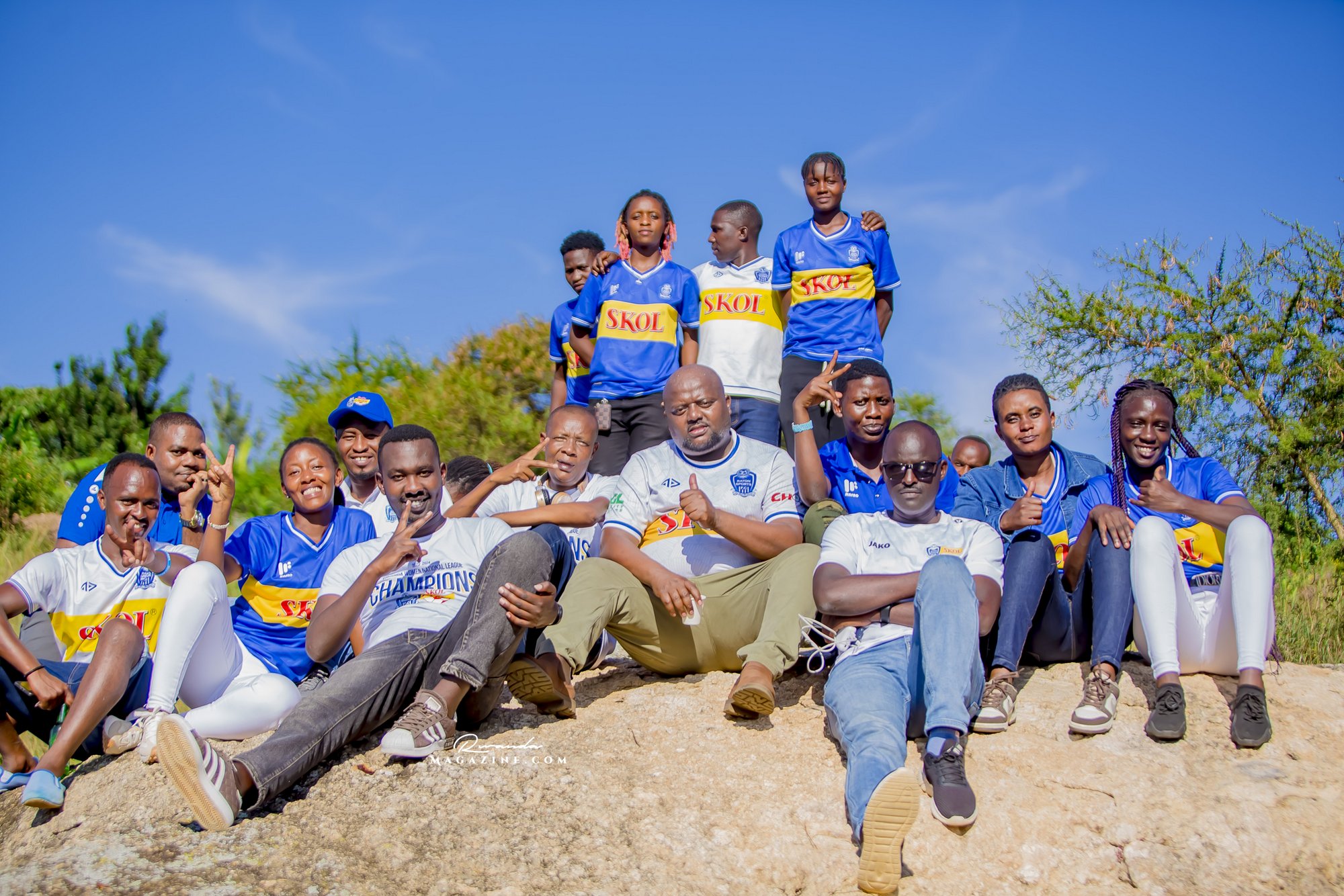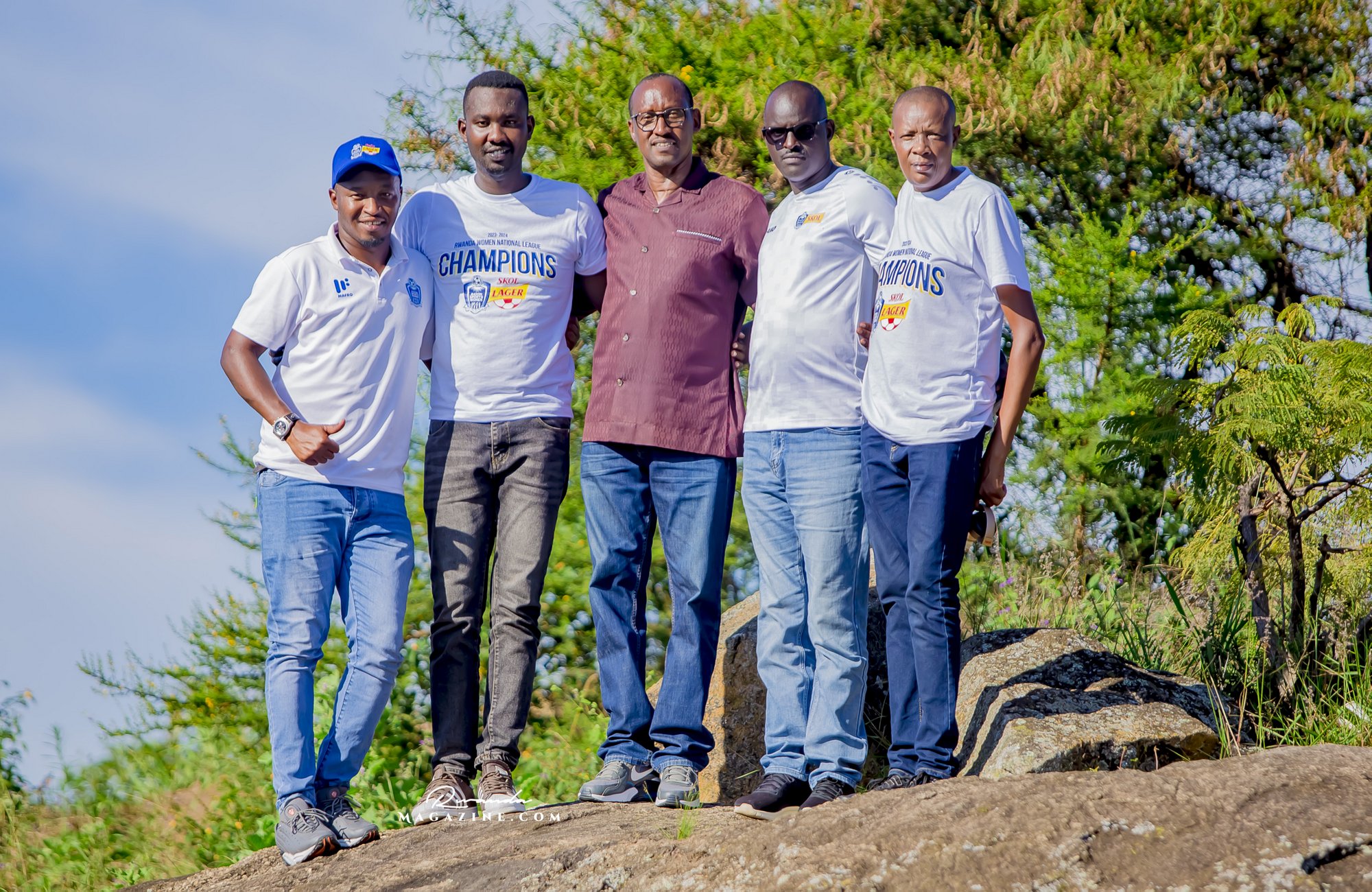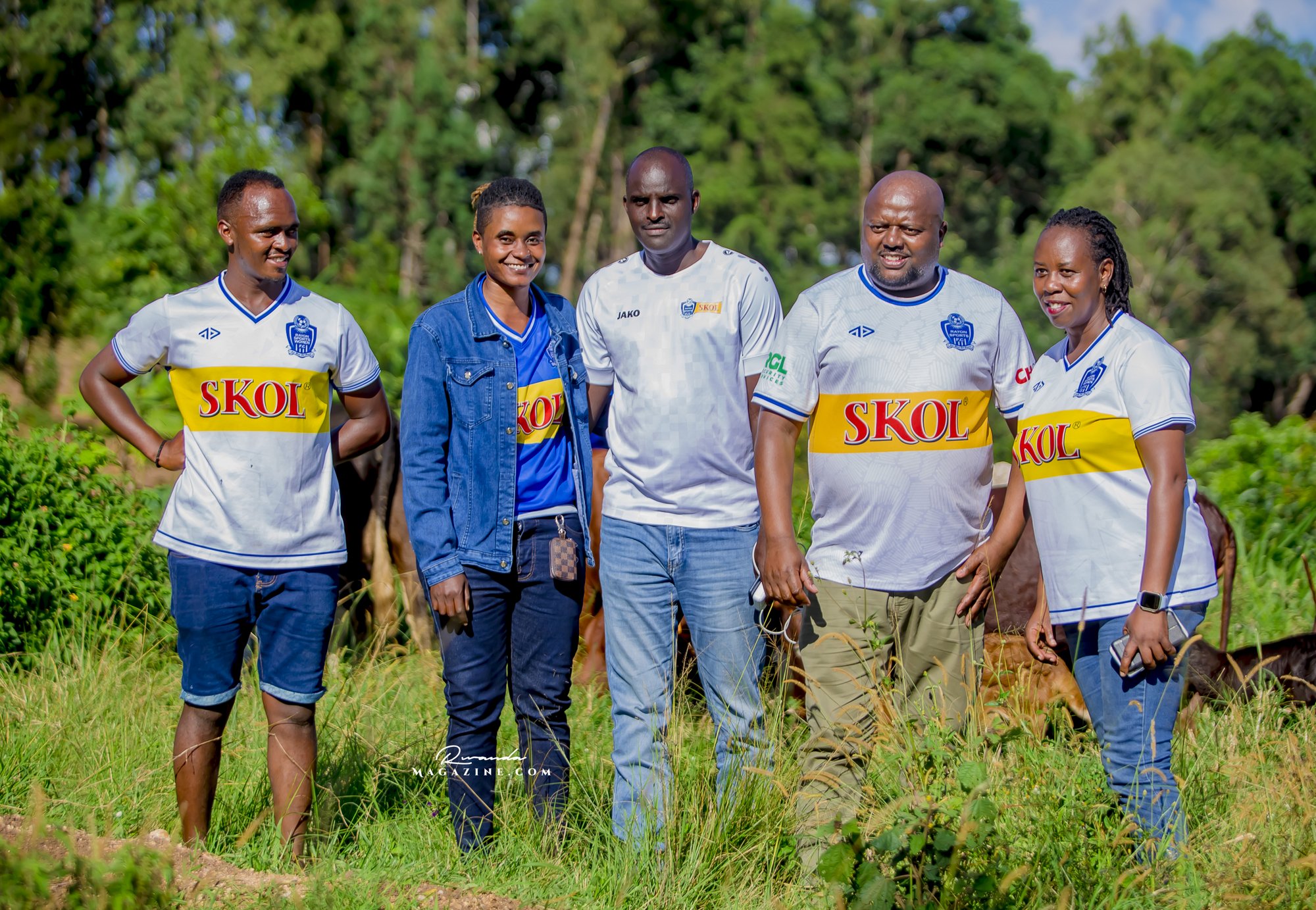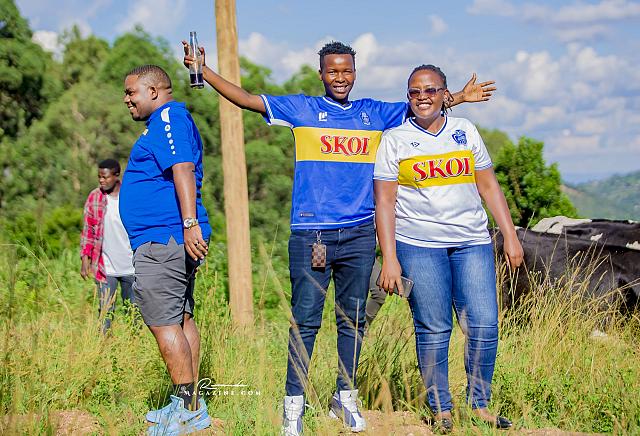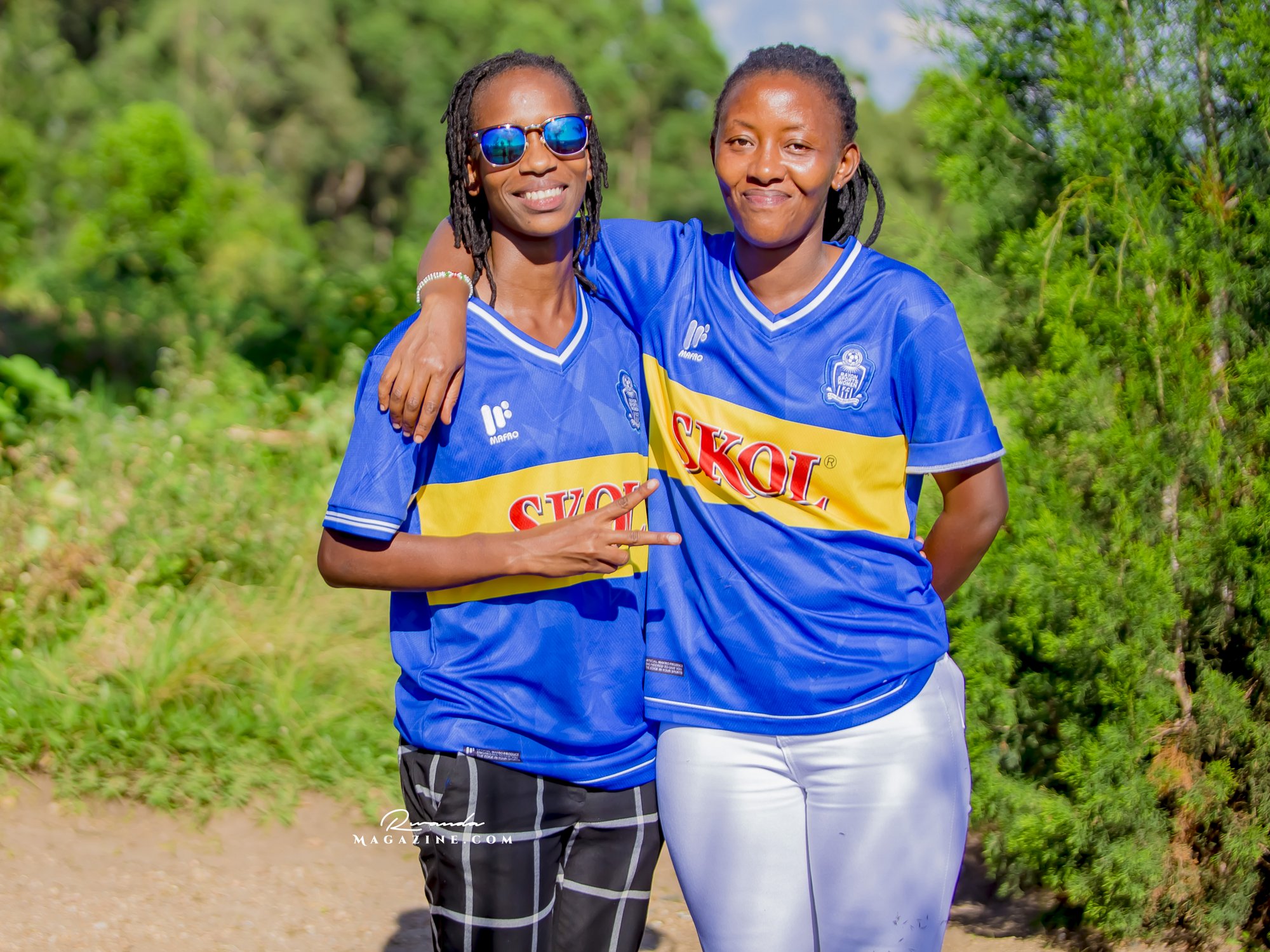 Nshimiyimana Emmanuel bahimba Matic (i buryo) na Olivier, umufana w’imena wa Rayon Sports WFC bishimiye gutemberera ku Mayaga