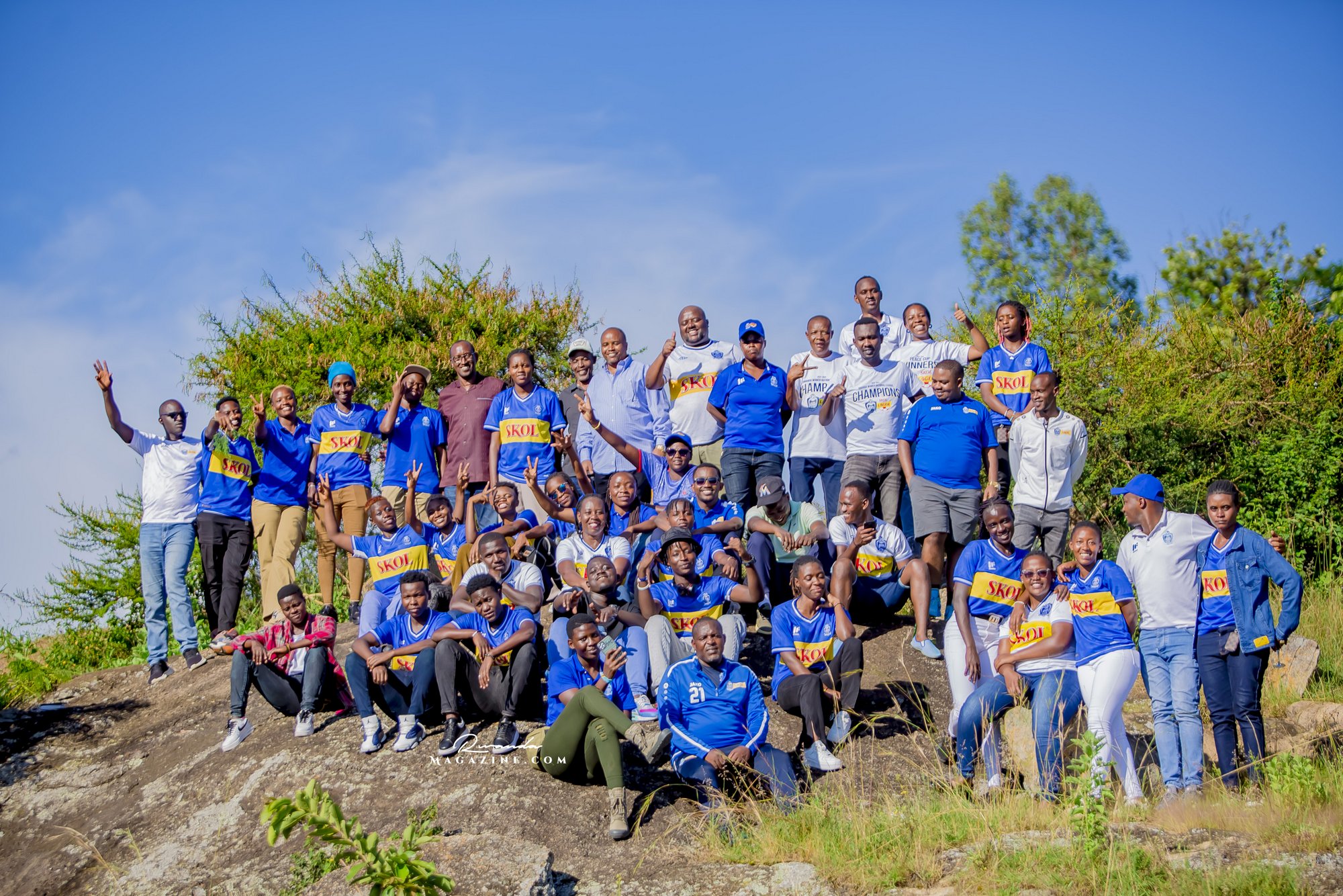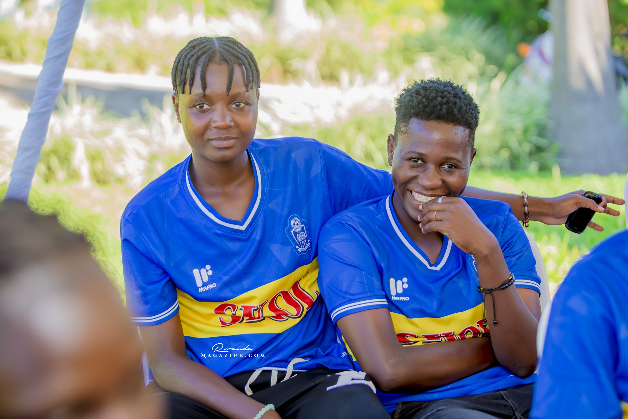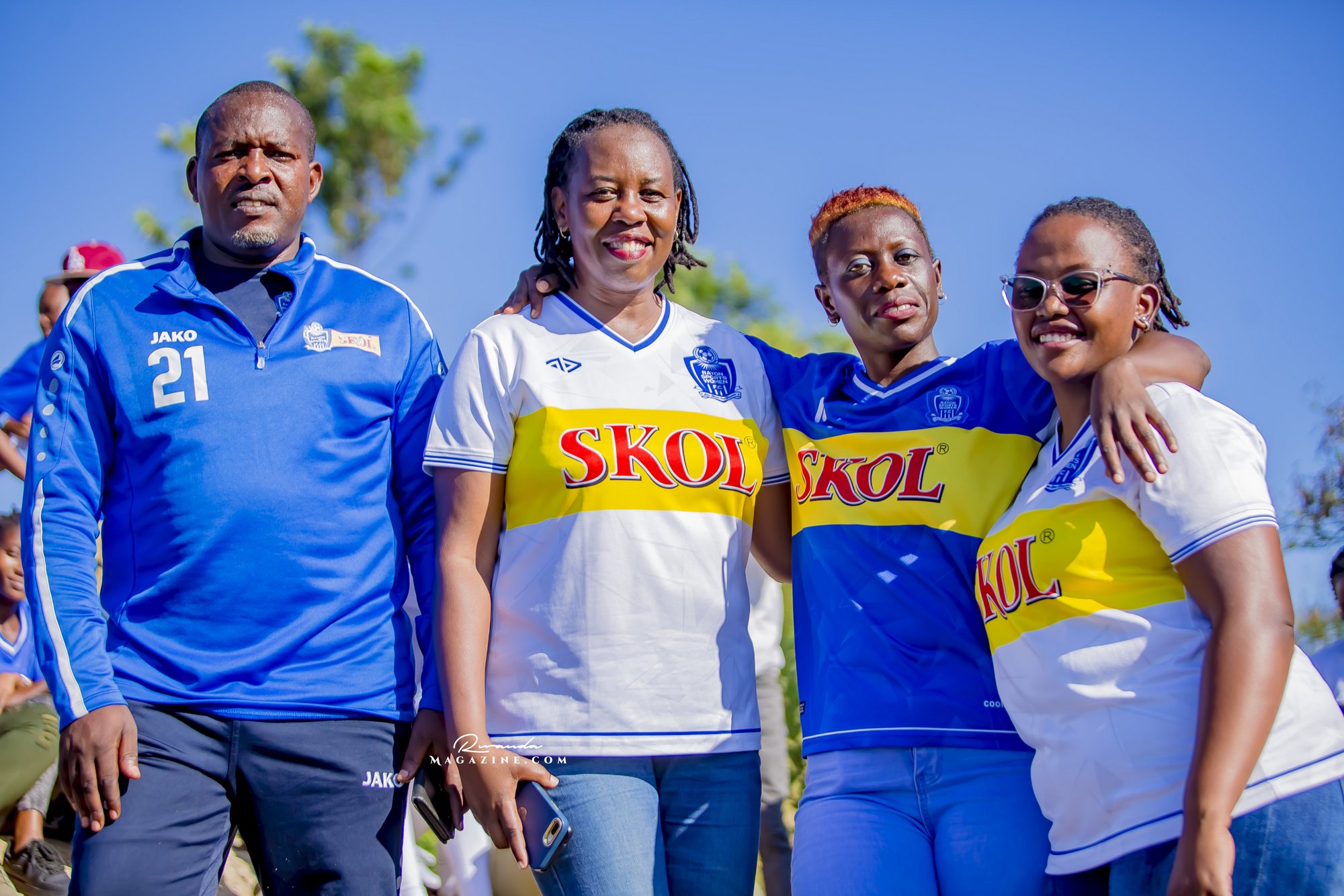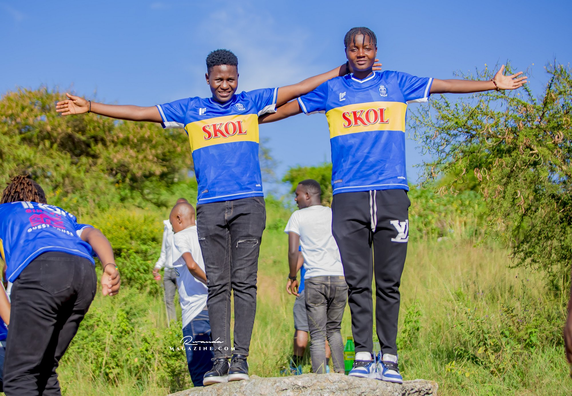 Nshimiyimana Emmanuel bahimba Matic (i buryo) na Olivier, umufana w’imena wa Rayon Sports WFC bishimiye gutemberera ku Mayaga
