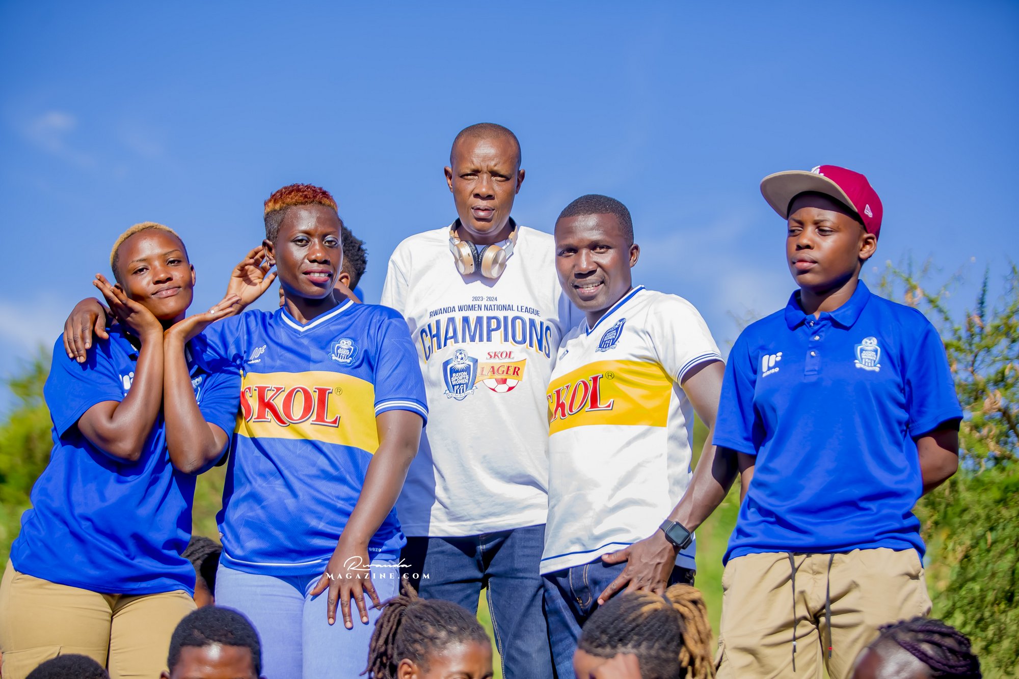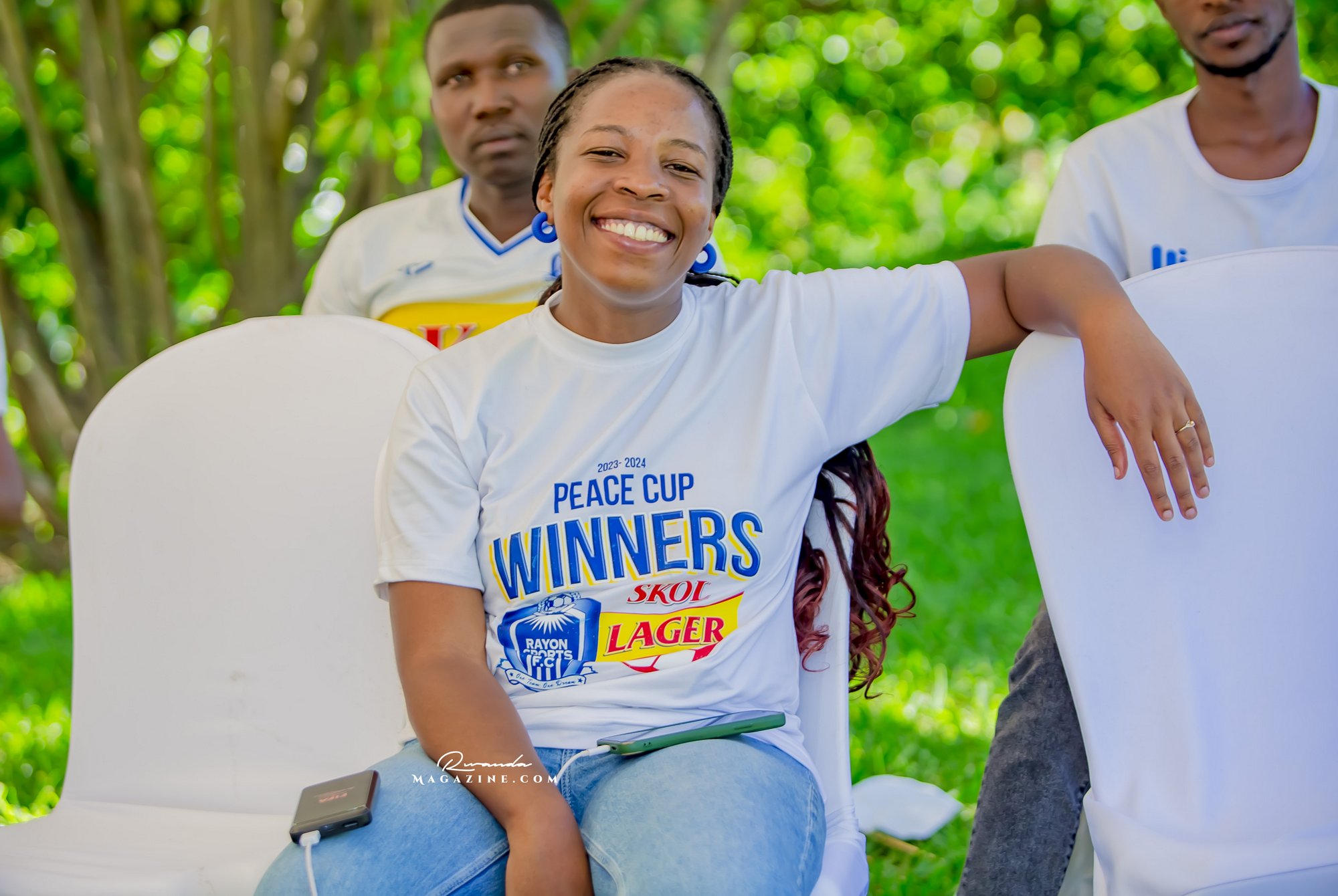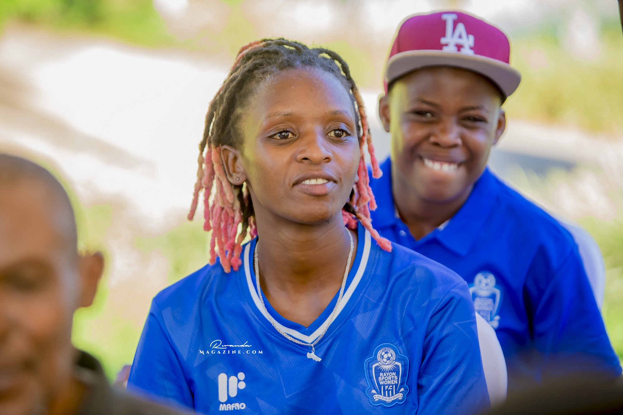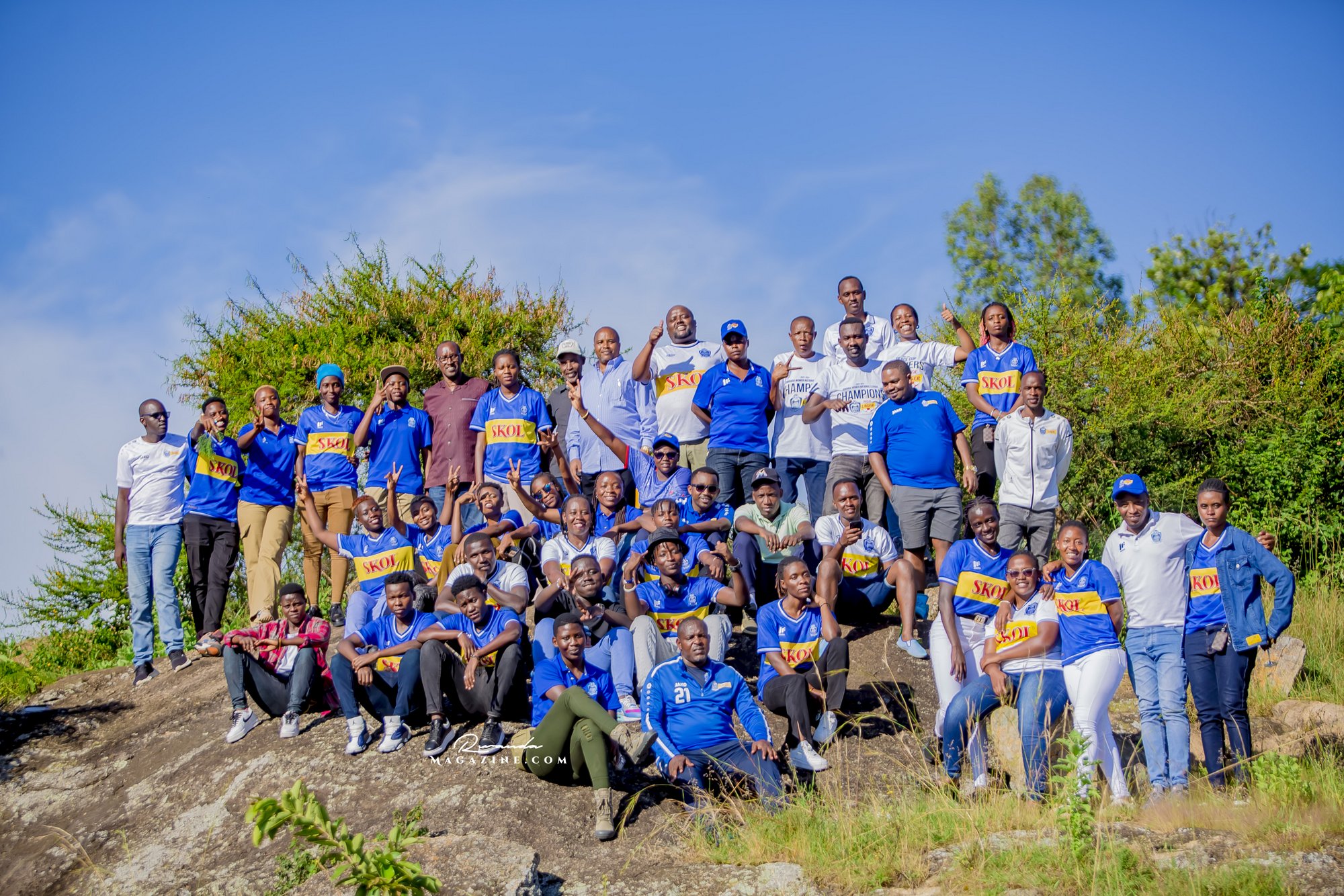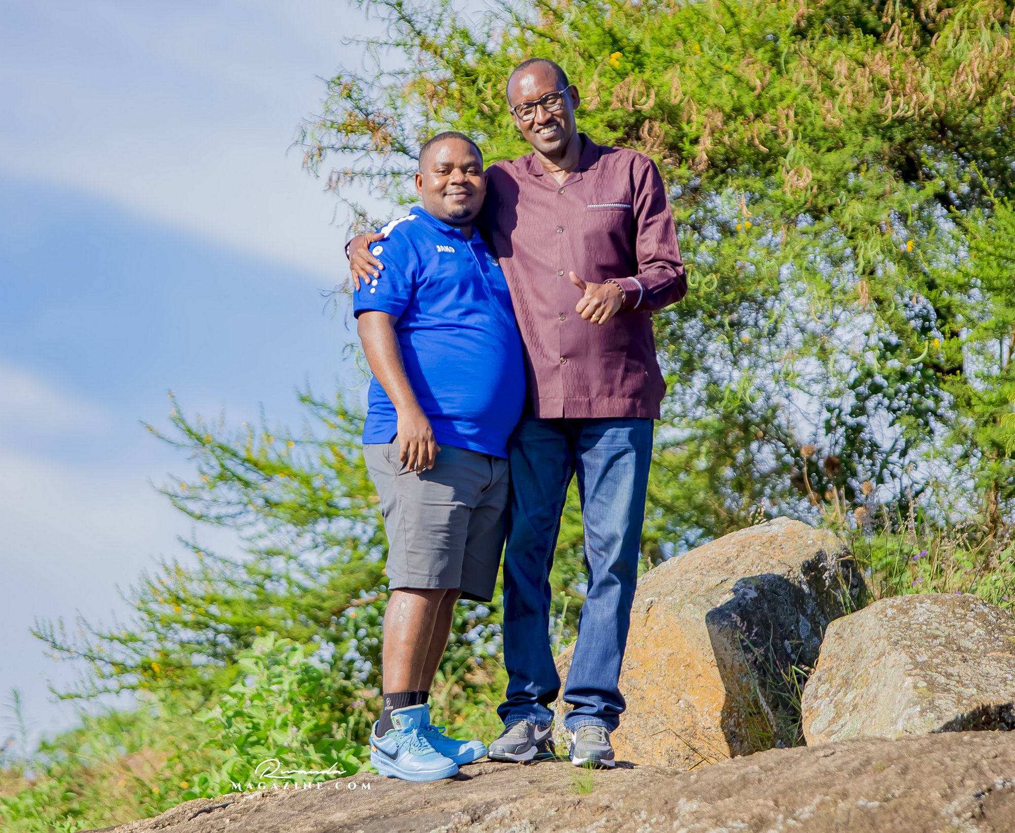 Nshimiyimana Emmanuel bahimba Matic (i buryo) na Olivier, umufana w’imena wa Rayon Sports WFC bishimiye gutemberera ku Mayaga