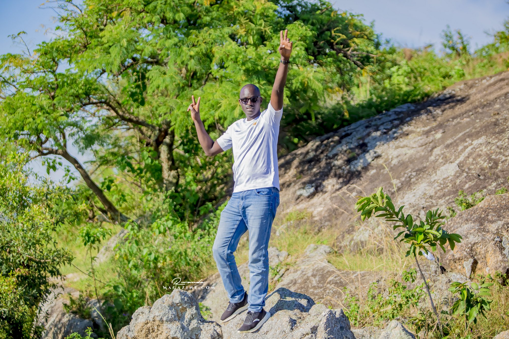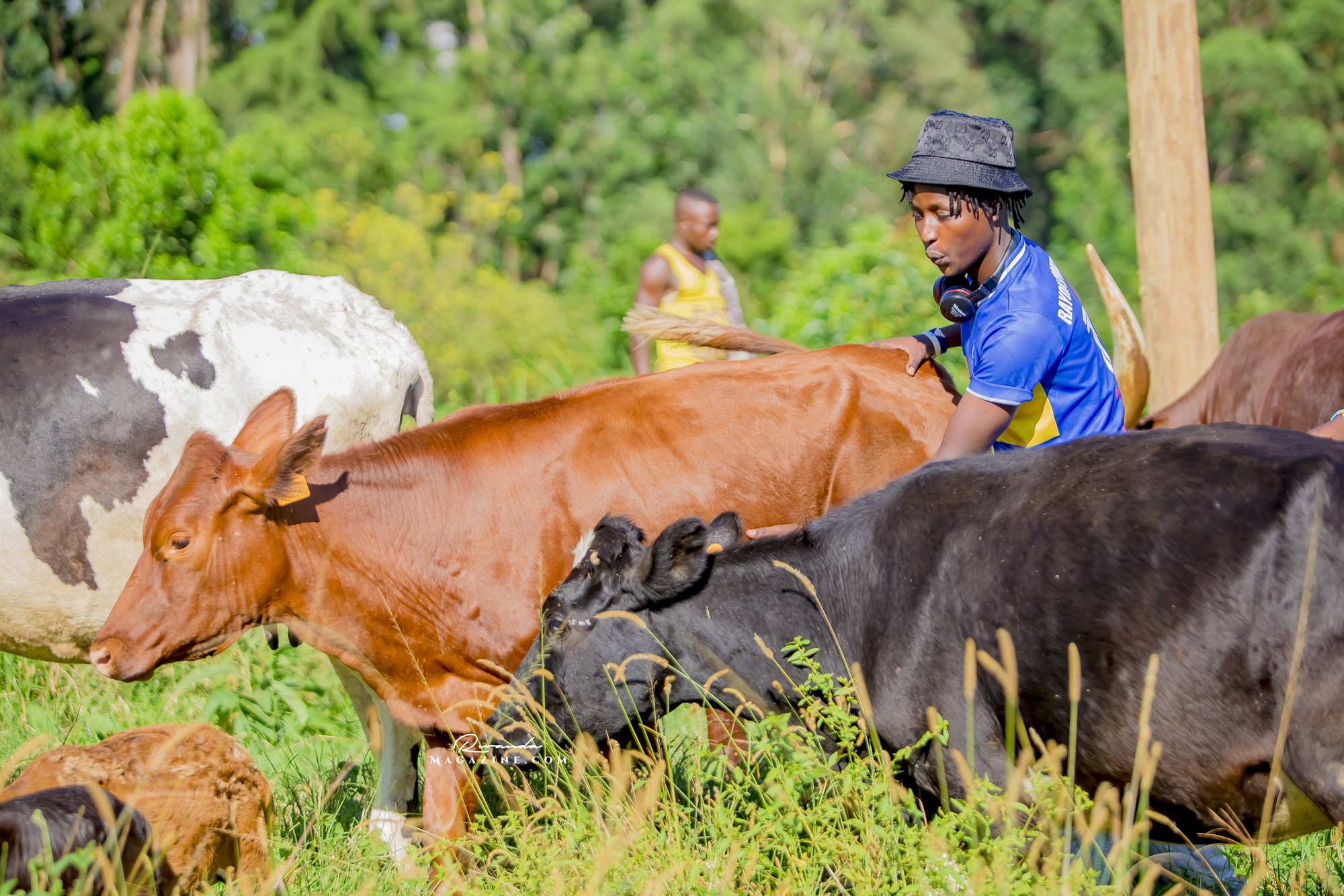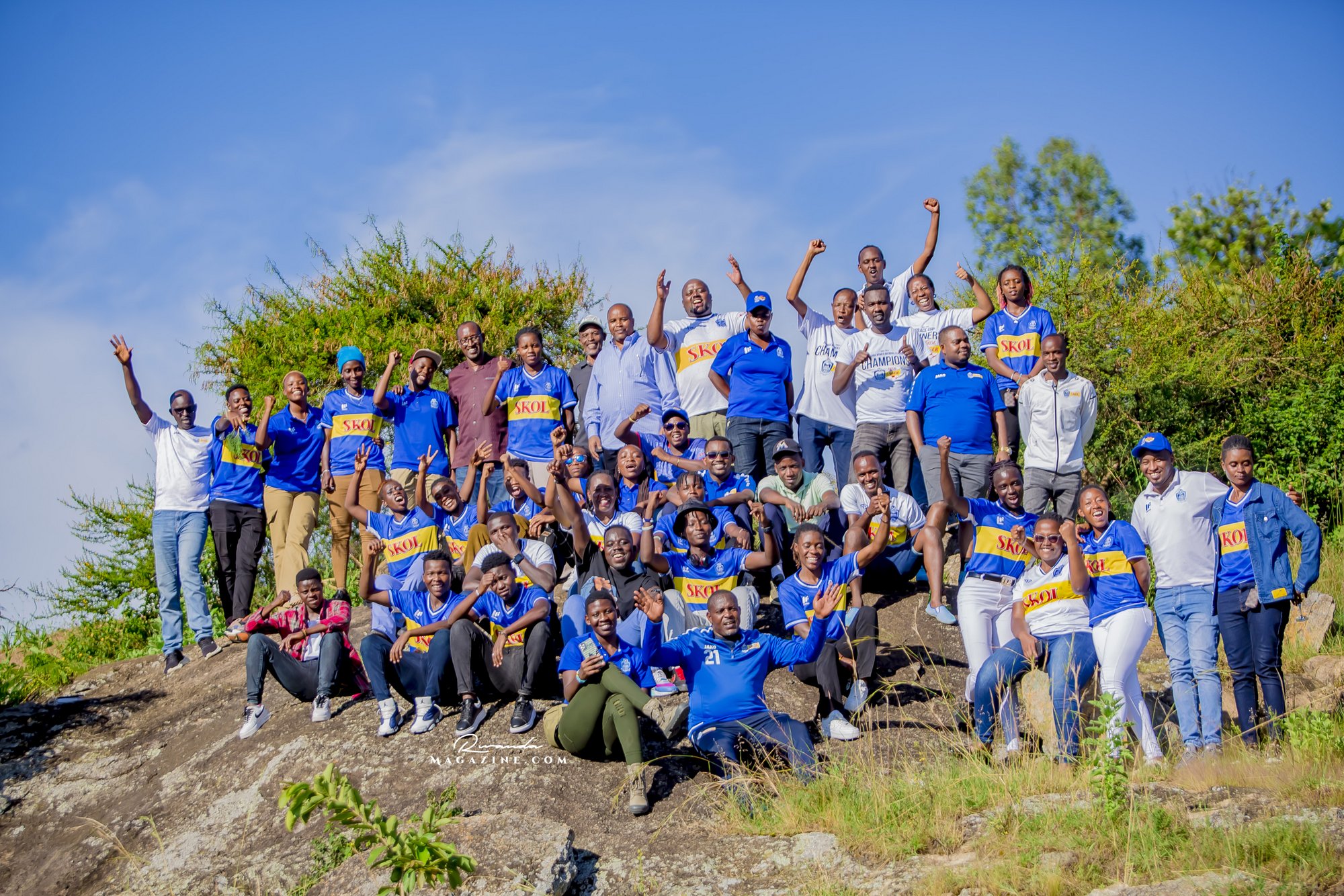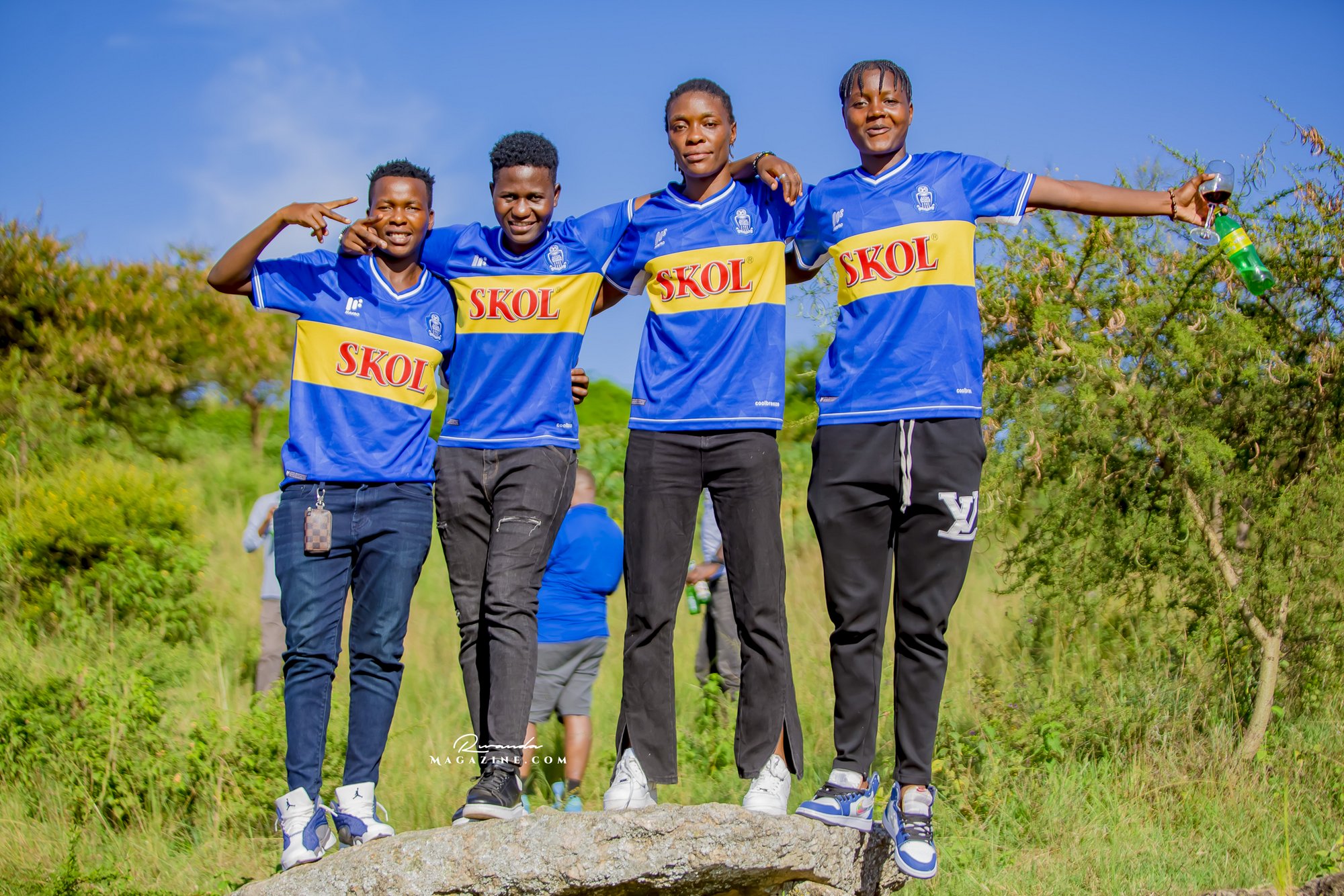 Nshimiyimana Emmanuel bahimba Matic (i buryo) na Olivier, umufana w’imena wa Rayon Sports WFC bishimiye gutemberera ku Mayaga