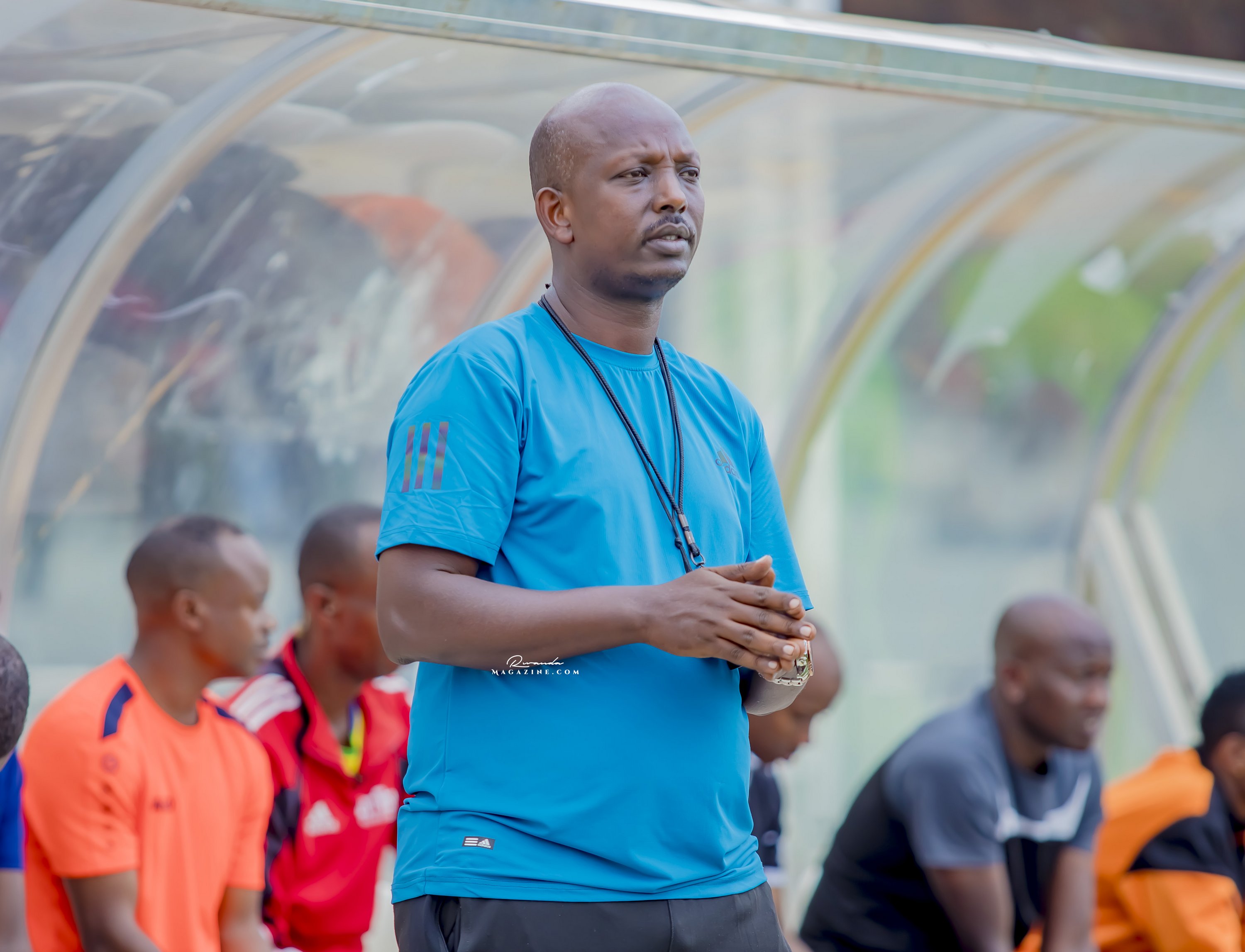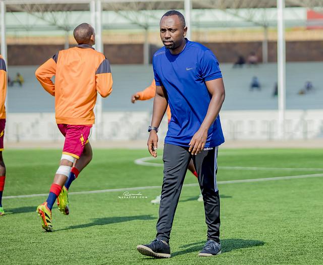 Gasana, umutoza wungirije wa Rep. Guard areba uko ikipe iri kwishyushya mbere y’umukino